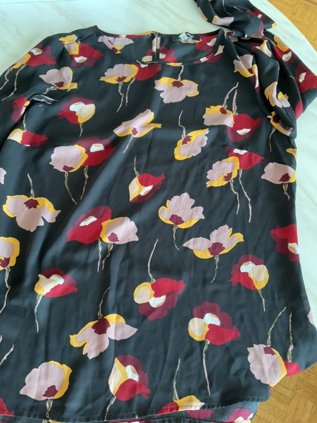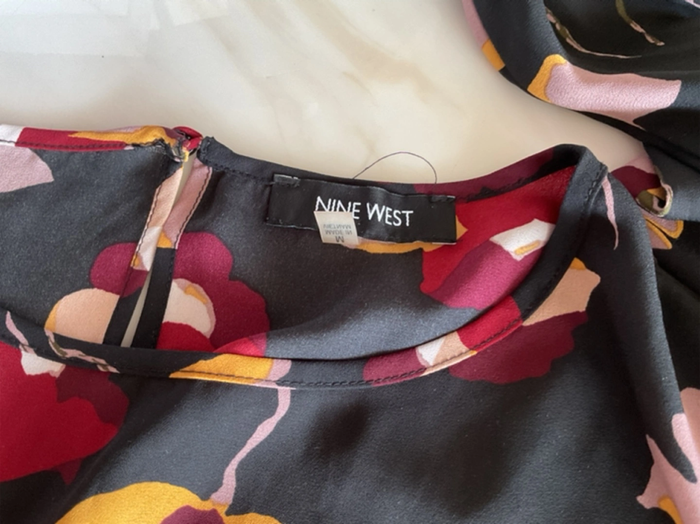 1000+Women's Nine West blouse. Floral print, dark background. Three quarter sleeves. Round neck.