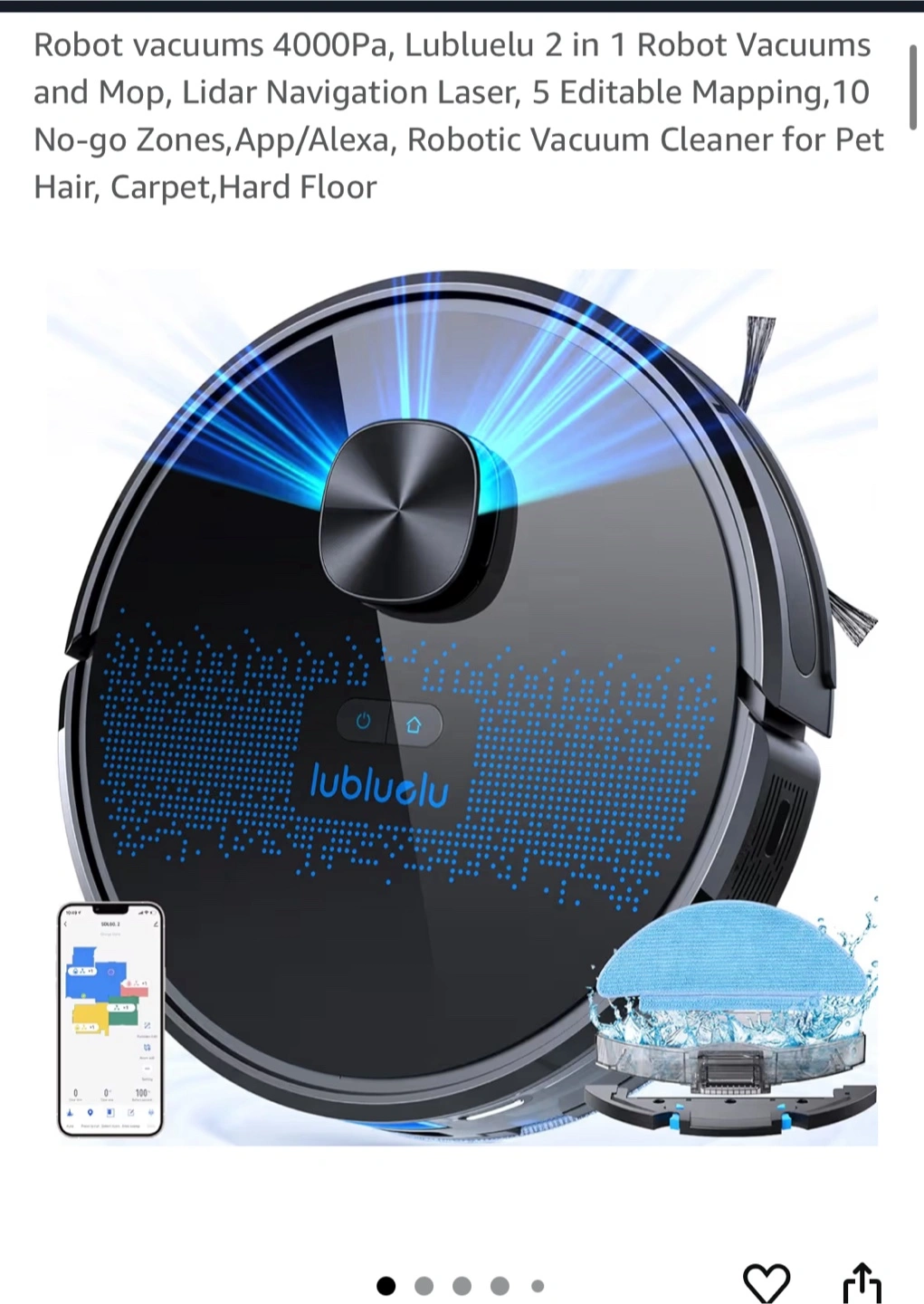 4000Pa suction. Lidar navigation laser. 5 editable mapping. 10 no-go zones. App/Alexa compatible. For pet hair, carpet and hard floors.