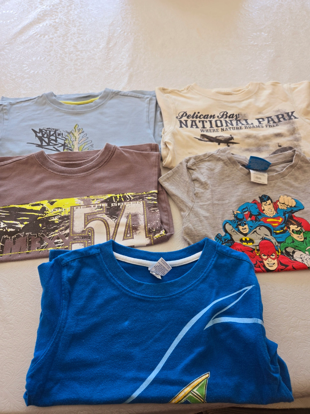 Bundle of boys' clothing. Includes graphic tees, button-down shirts, and a polo. Various sizes and styles. Great for summer. Pickup weston rd and Rutherford rd. Cash only $3 each or $25 for all.
