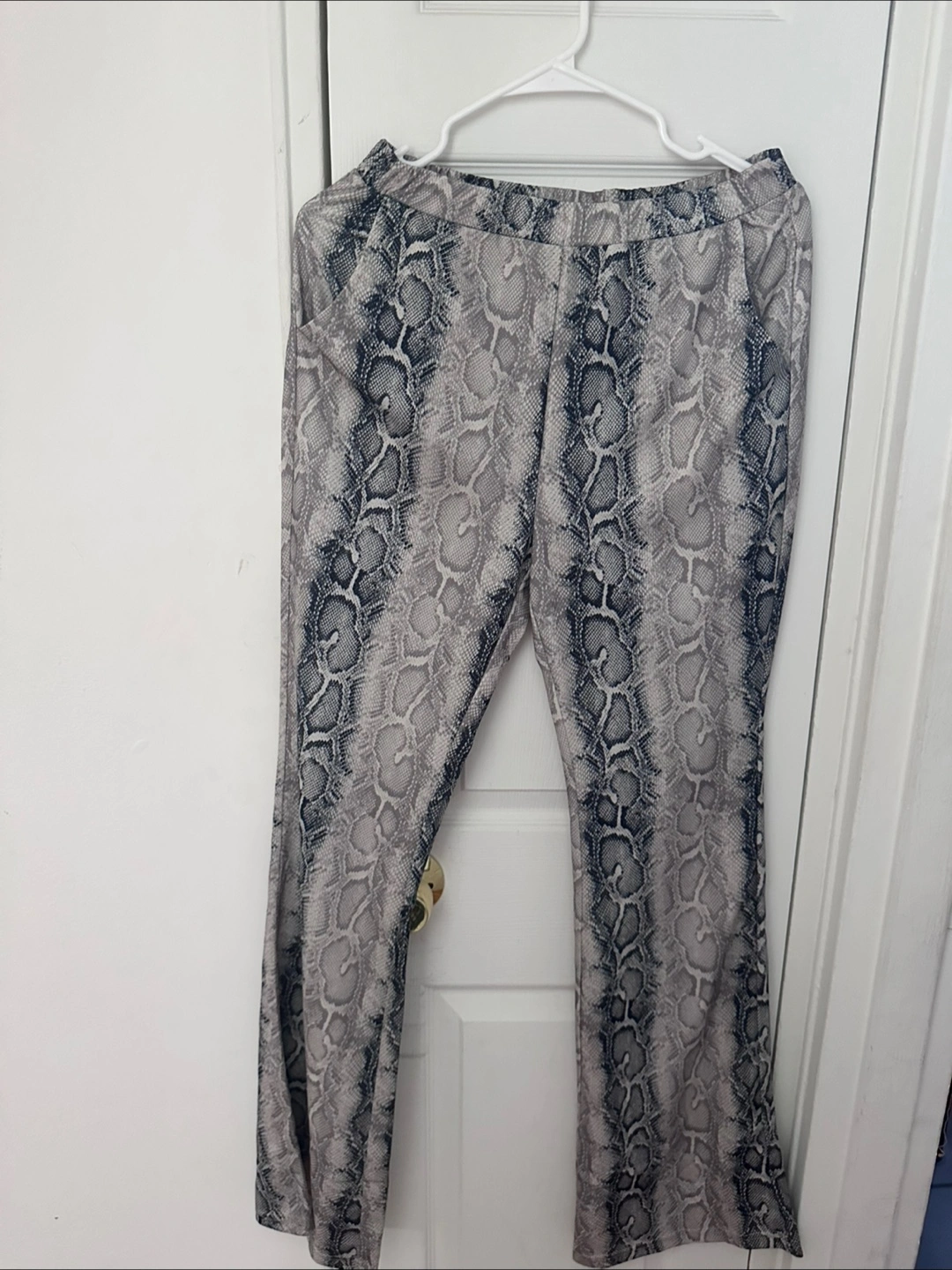 Women's flare pants. Snakeskin print. Elastic waistband. Size large.