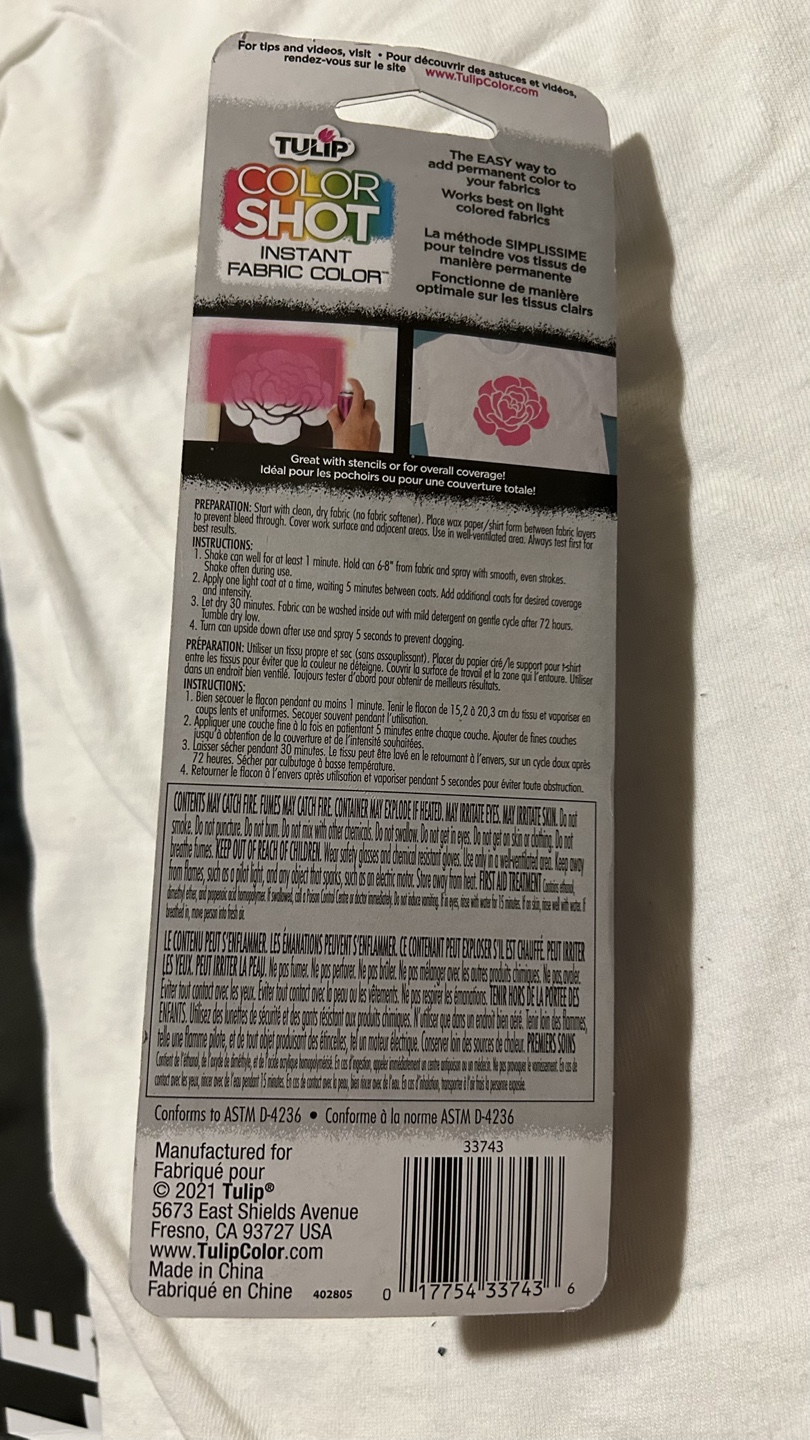 1 / 21 / 2Buy & SellTulip Color Shot Instant Fabric Color - WhiteTulip Color Shot Instant Fabric Color - White$8New Tulip Color Shot Instant Fabric Color in white. 3 oz can. Great for stencils or overall coverage. Bought from Michaels.ConditionNewWHERE TO MEETWest Point greyView MapSELLERverifiedHenryW Point Grey1003 reviews0 chats·0 favorites·7 viewsSEND CHAT TO SELLERHi Henry! I’m interested in your listing.Hi Henry! I’m interested in your listing.Get the Karrot app to chatSign In to chat
