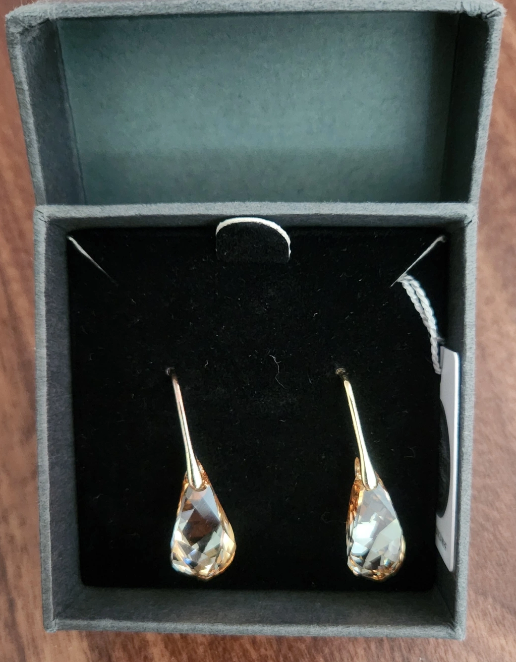 Gift: Beautiful and elegant crystal drop earrings with gold-tone hooks.