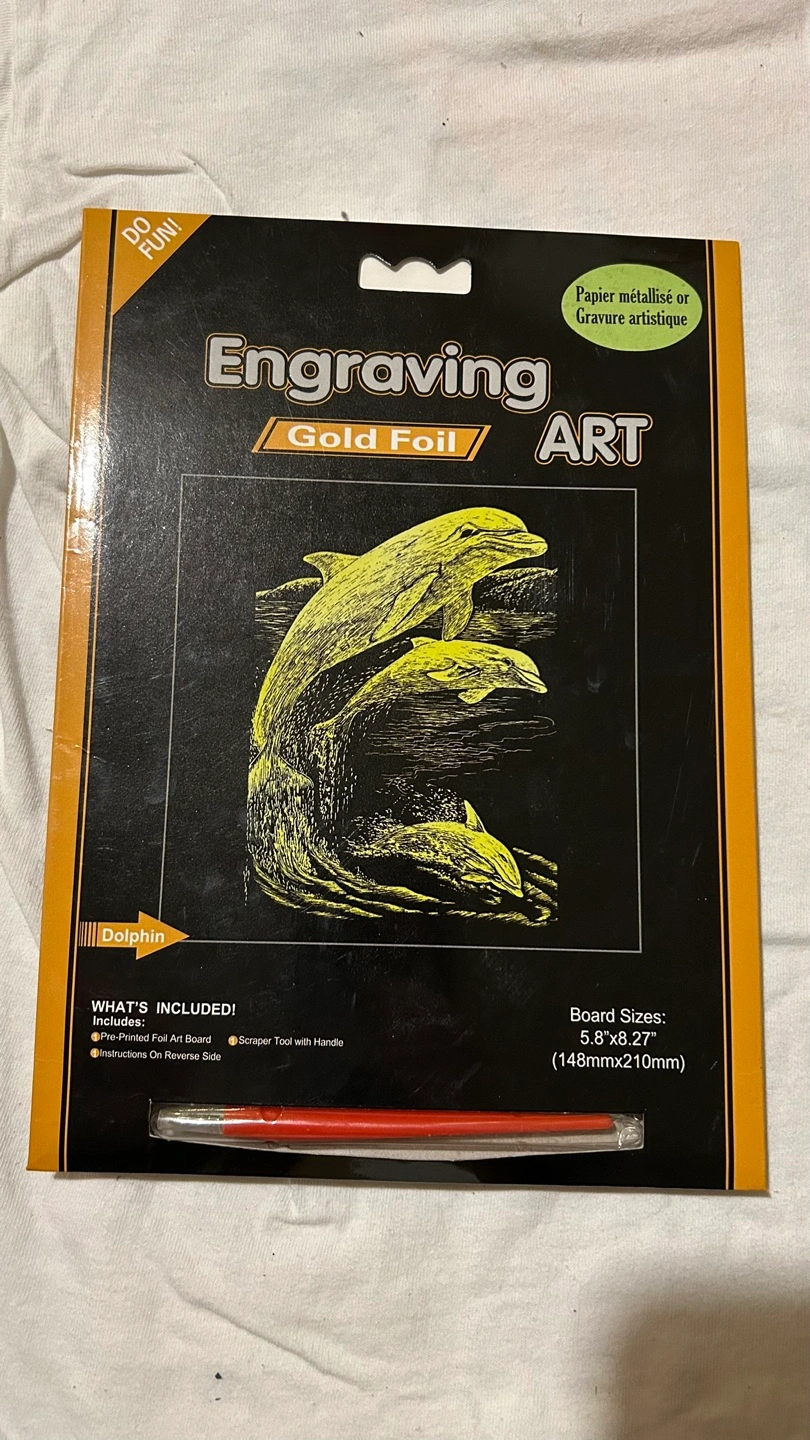 Buy & SellEngraving Gold Foil Art Kit - DolphinsEngraving Gold Foil Art Kit - Dolphins$5New, unopened art engraving. Features dolphins. Includes gold foil board, scraper tool, and instructions. Board measures 5.8” x 8.27”.ConditionLike newWHERE TO MEETWest Point greyView MapSELLERverifiedHenryW Point Grey1003 reviews0 chats·0 favorites·9 viewsSEND CHAT TO SELLERHi Henry! I’m interested in your listing.Hi Henry! I’m interested in your listing.Get the Karrot app to chatSign In to chat