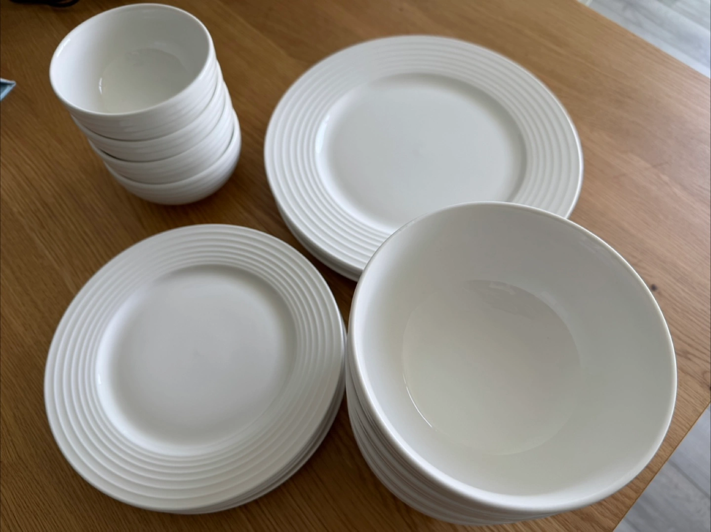 Beautiful Mikasa Sophia white dinnerware. Includes plates and bowls. Microwave and dishwasher safe. 16pcs. Purchased 2 yrs ago. Was not used too often since we had another set. Asking $40. Pick up near downsview park.