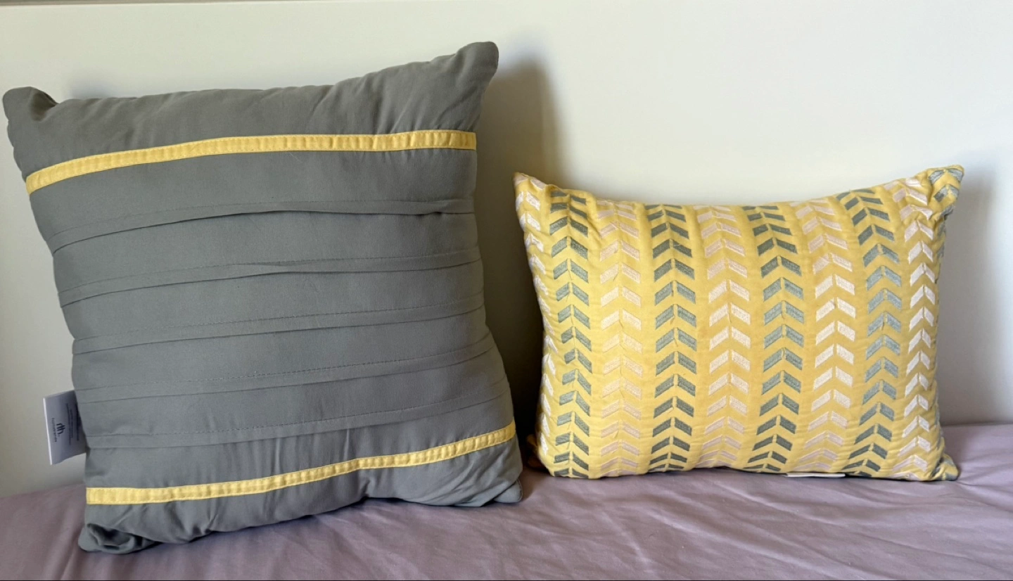 🏒Set of Two Decorative Throw Pillows – Grey and Yellow