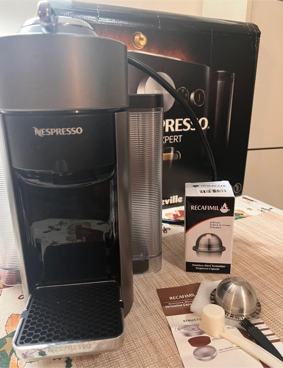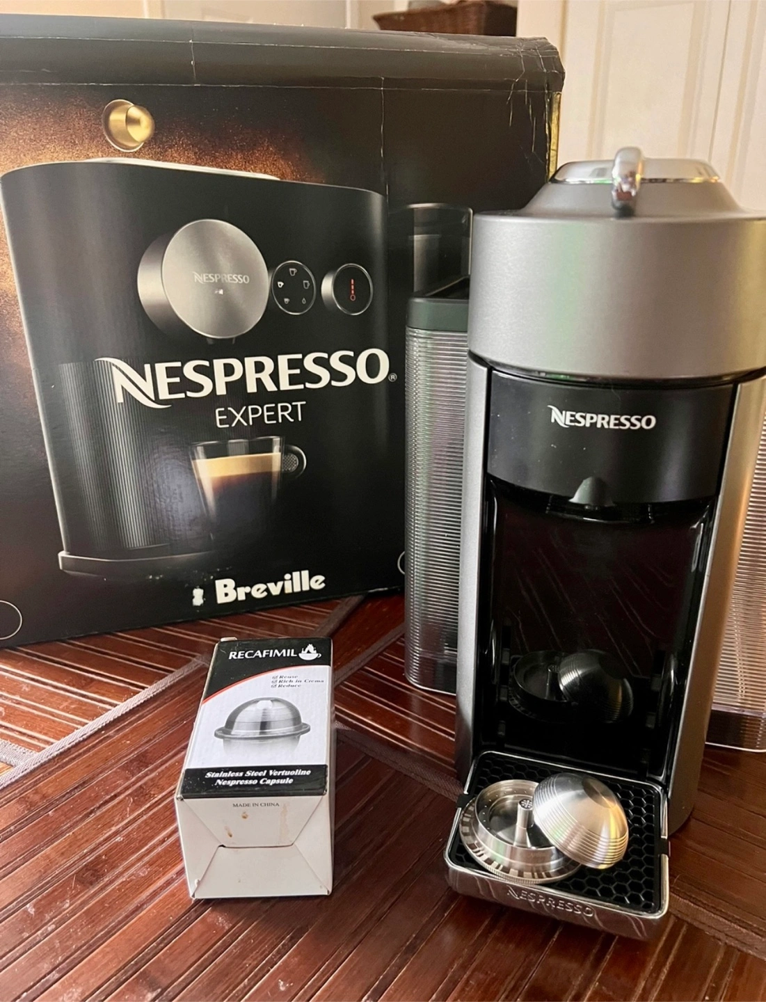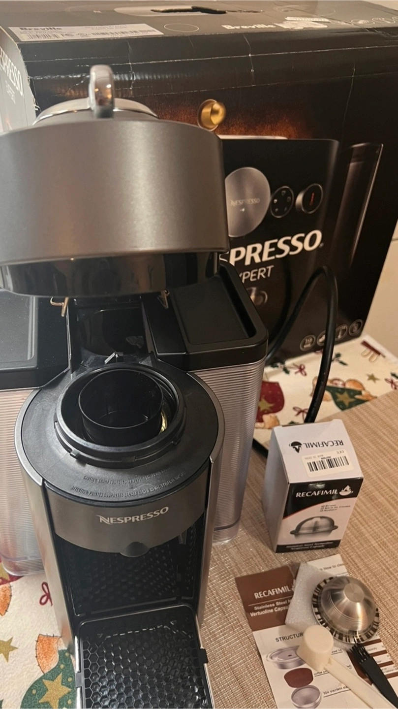 Nespresso Expert coffee machine. Includes original box and accessories. Looks new, clean and stored in the box. I will include the aluminum reusable pods. The price is $50.00 cash only and can meet at Burquitlam Starbucks