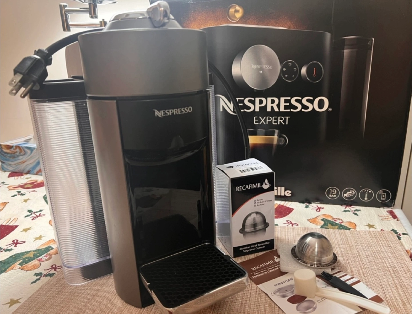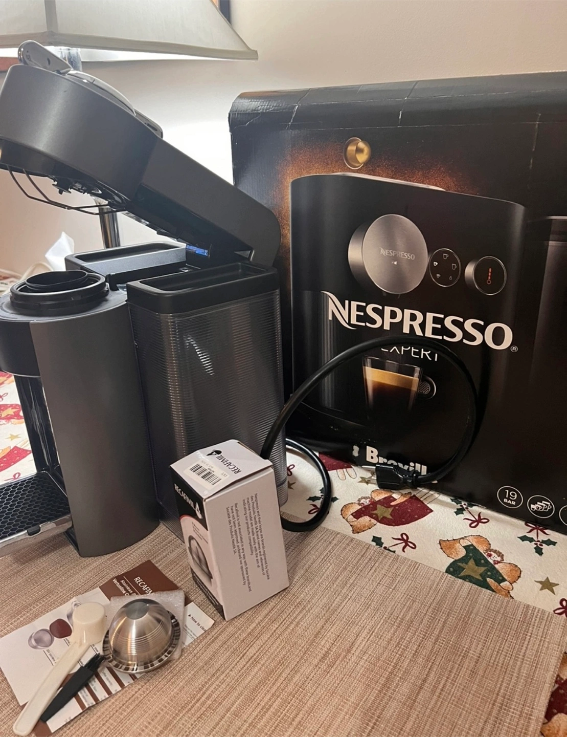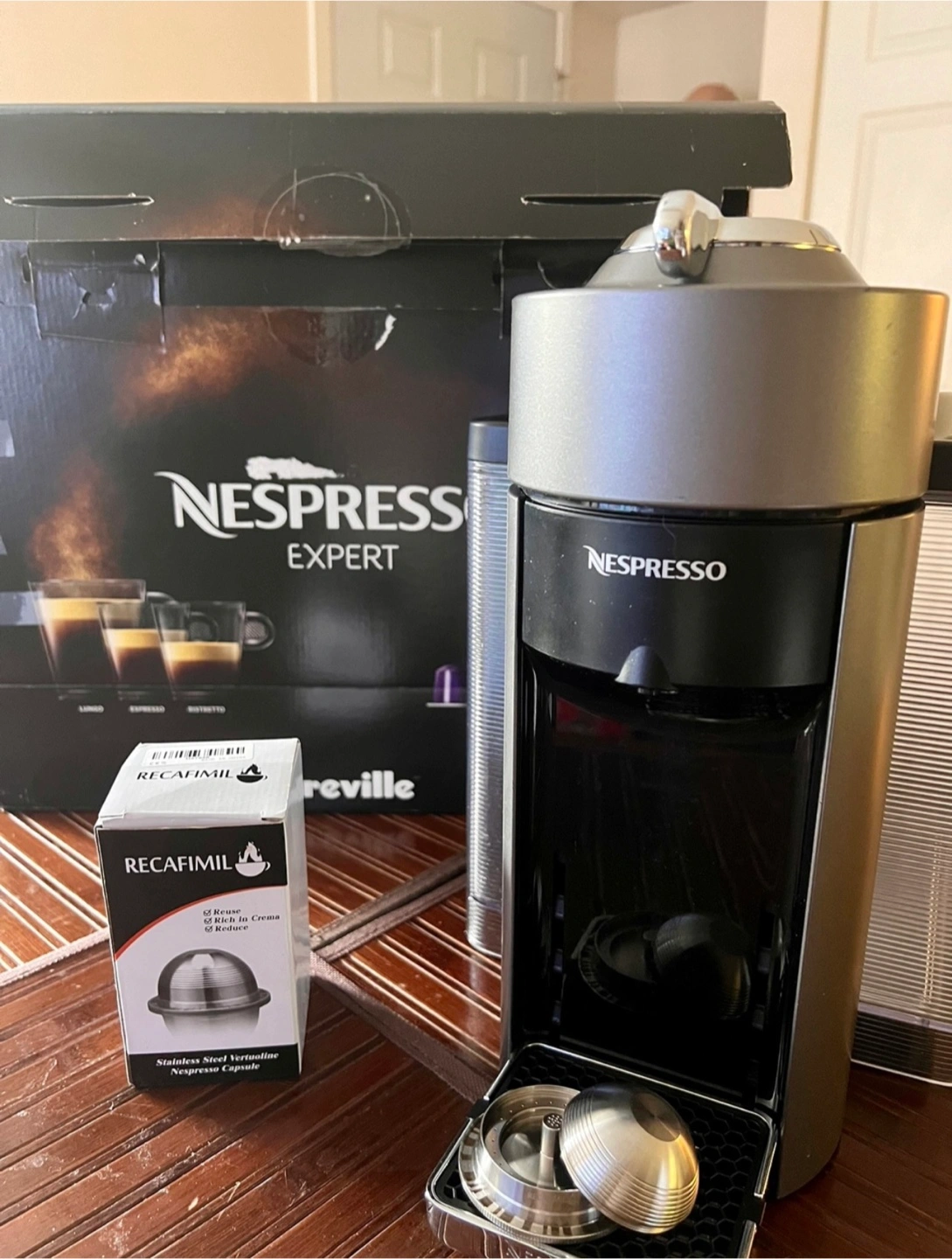 Nespresso Expert coffee machine. Includes original box and accessories. Looks new, clean and stored in the box. I will include the aluminum reusable pods. The price is $50.00 cash only and can meet at Burquitlam Starbucks