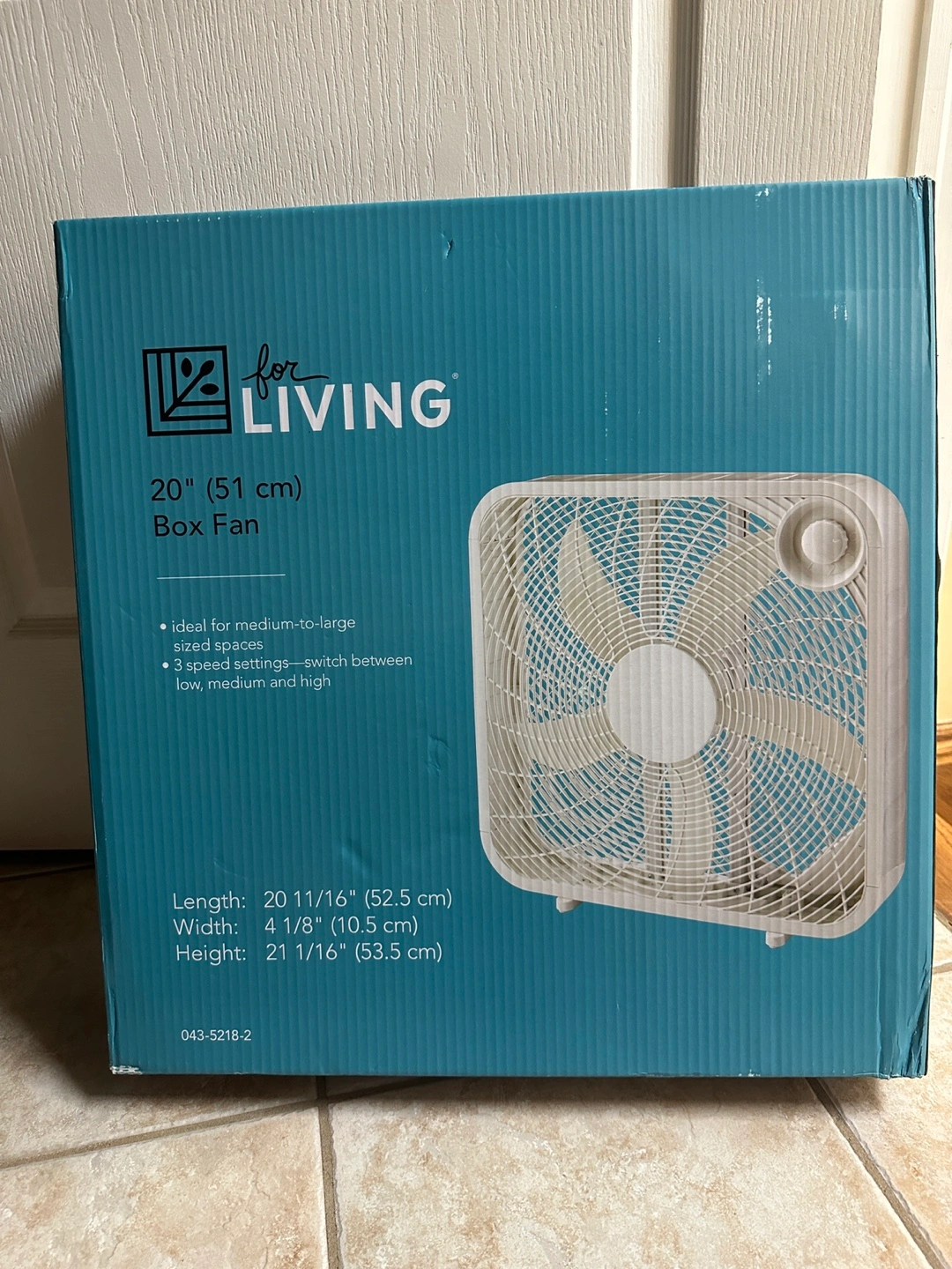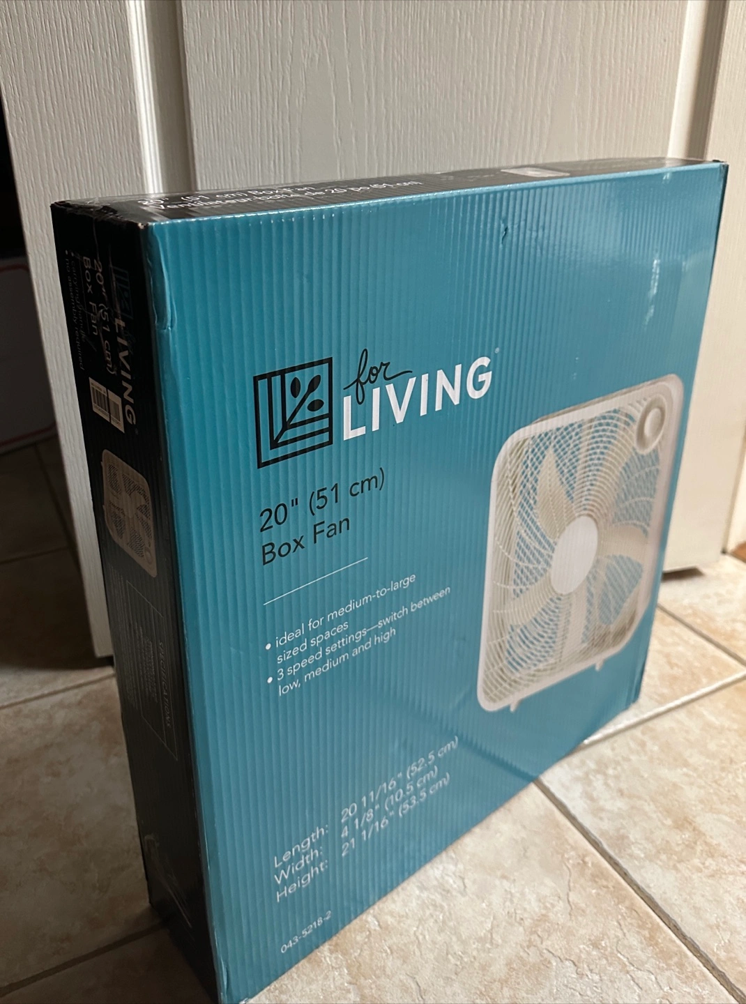 100Mississauga, Brandnew For Living Plastic 5-Blade Portable Box/Floor Fan, 3-Speed, White, 20-in $30 firm