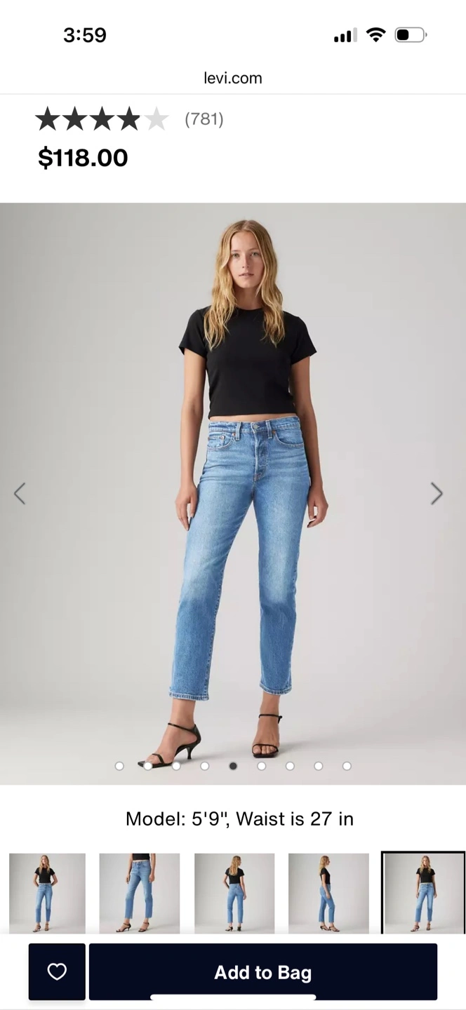 These are my most favourite jeans. These are a bit big on me, so I bought the exact pair in a smaller size. I wear them all the time. Super comfortable. Currently selling on Levi’s website for $118plus tax. No stains or damage of any kind. Washed in cold only and air dried every time. These are like new and it’s hard to find them in a 26inch inseam now. Perfect length for so many kinds of shoes.