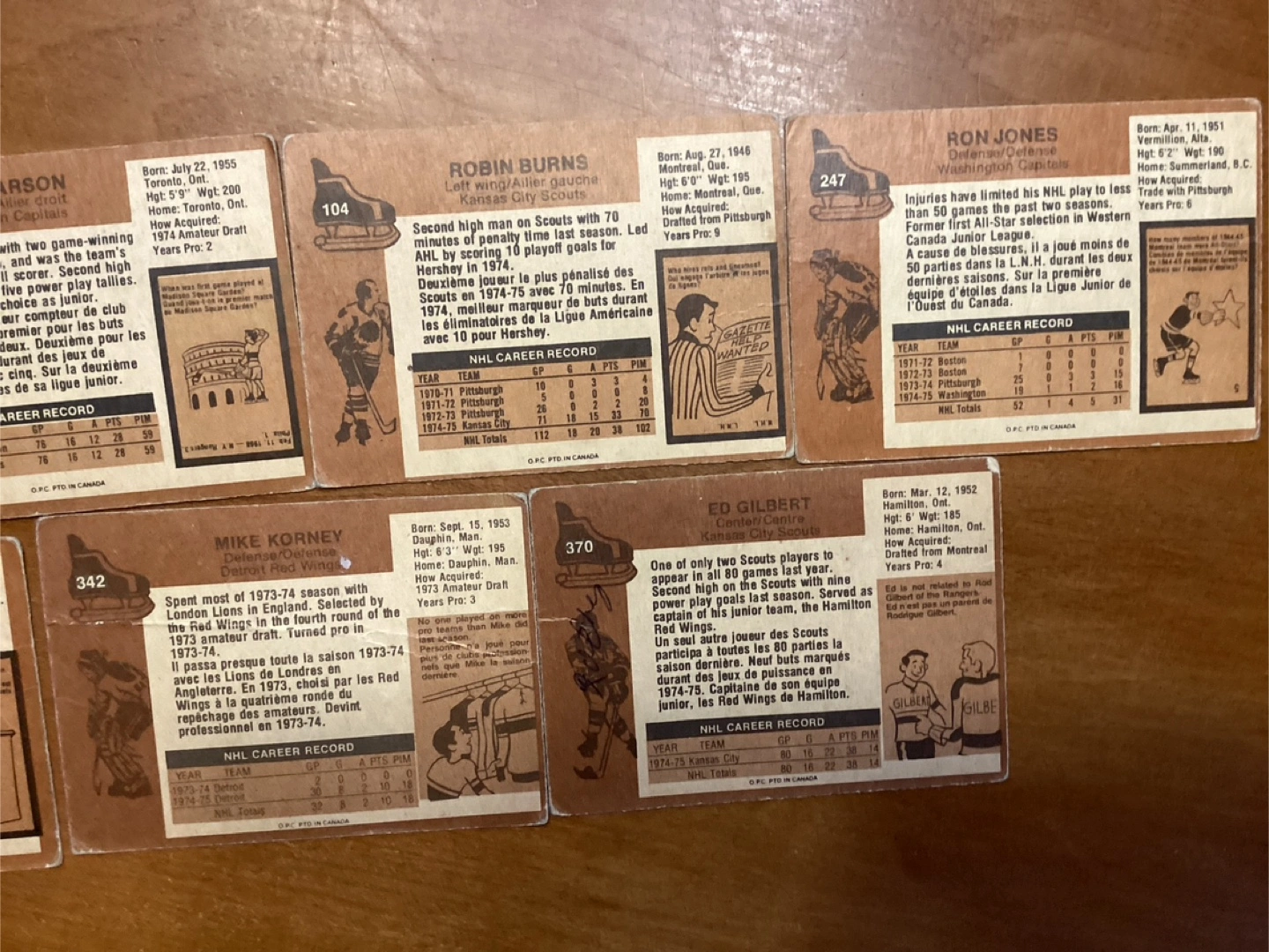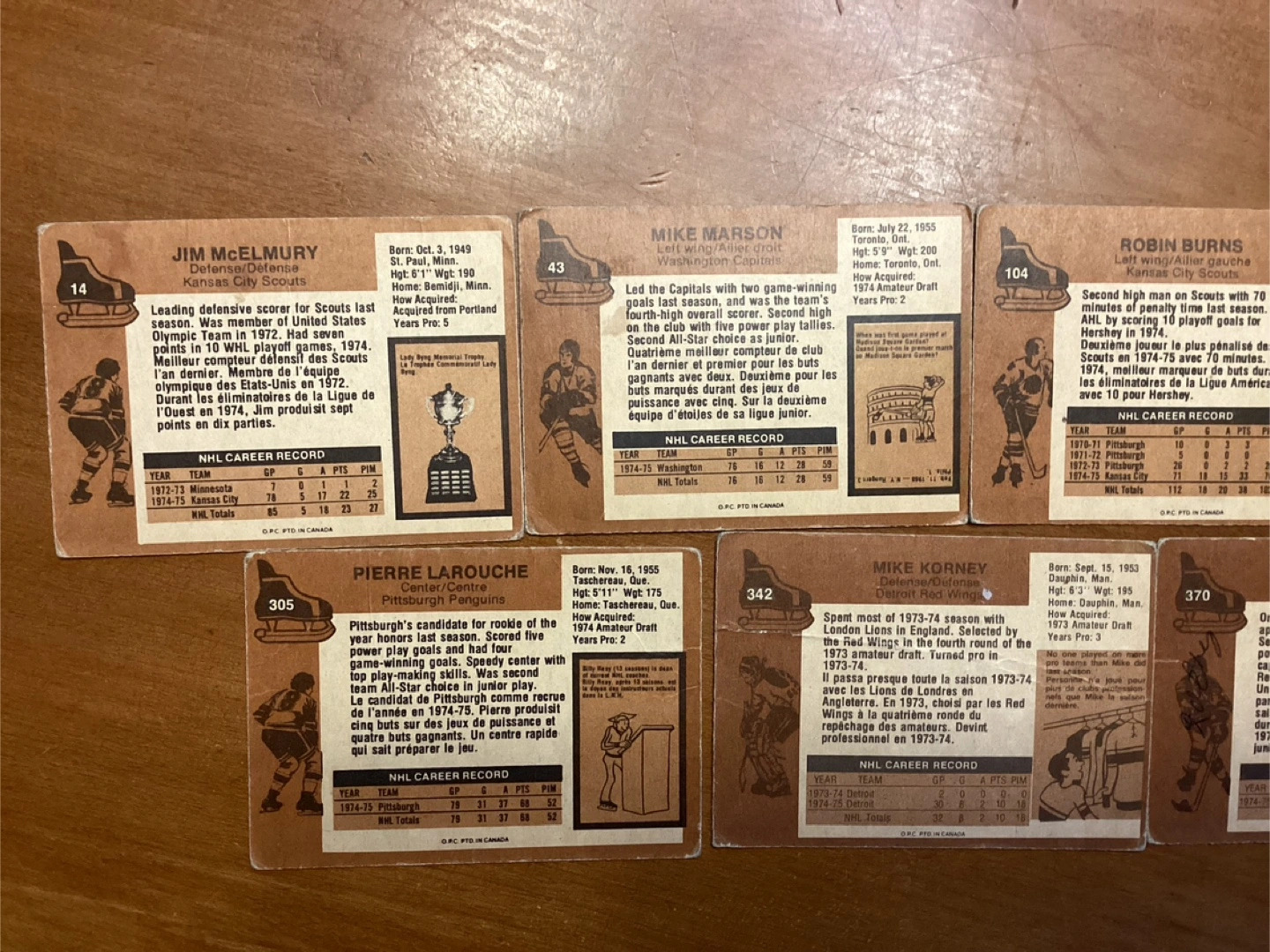 7. 1975-76 O-PEE-CHEE Hockey Card#’s14-43-104-247-305-342-370
