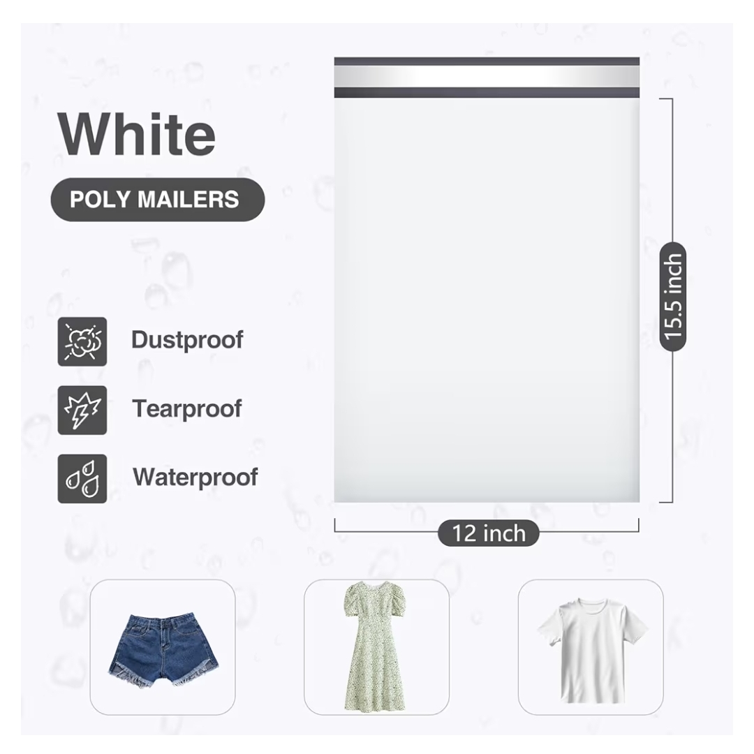 90 White Poly Mailers 12x15.5" - Waterproof #ThriftyPicks π