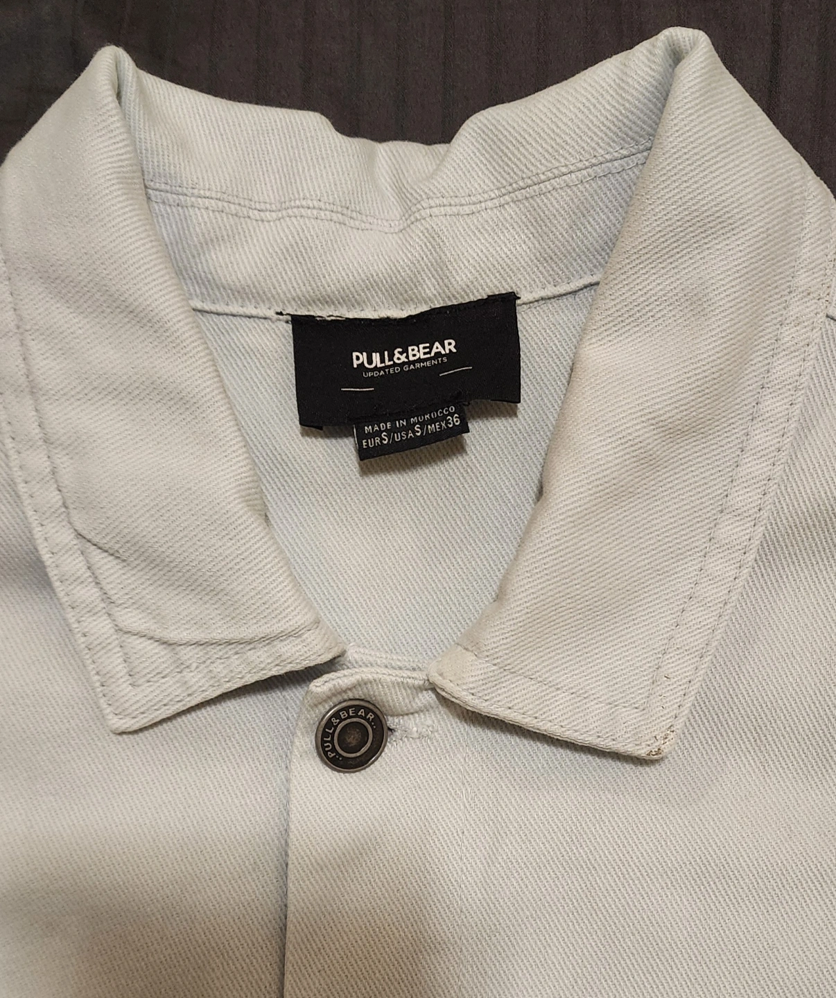 Pull&Bear Light Grey Denim Shirt Jacket, Size L