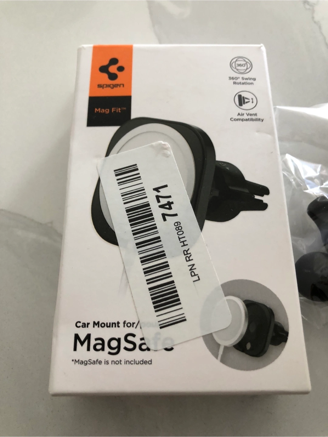 Brand new Spigen Mag Fit car mount. 360 ° swing rotation. Air vent compatibility. MagSafe not included.