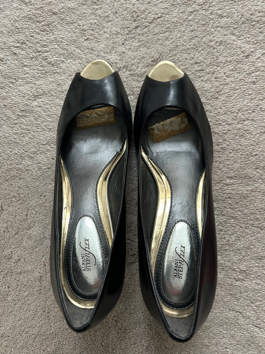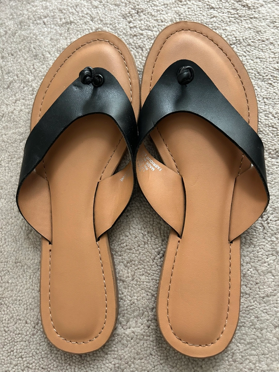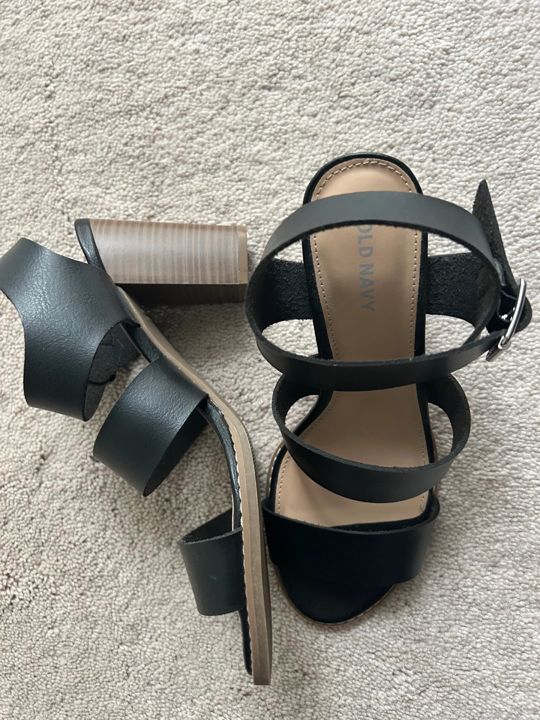 Bundle of four pairs of women's shoes. Includes two pairs of sandals in excellent condition, one pair of black open toe heeled shoes, and one pair of brand new black wedge sandals. Size 8, expect black wedge sandals are size 7. All for $25 or 1 for $10