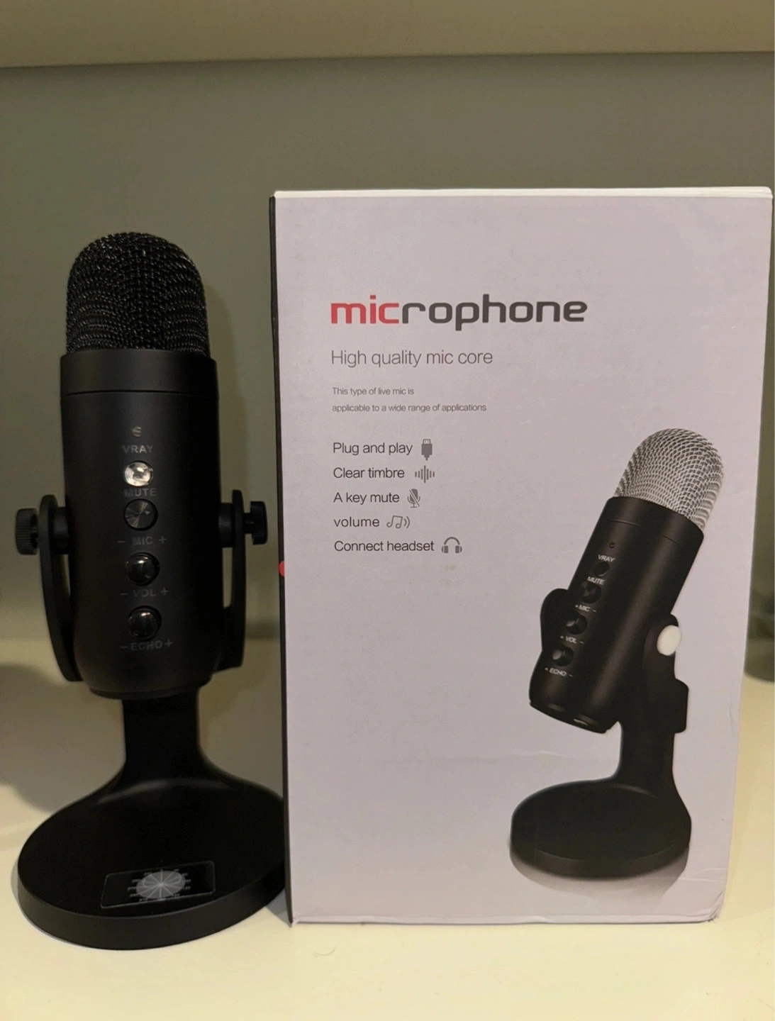 High-quality microphone. Plug and play. Clear timbre. A key mute volume. Connect headset. Includes USB cable.