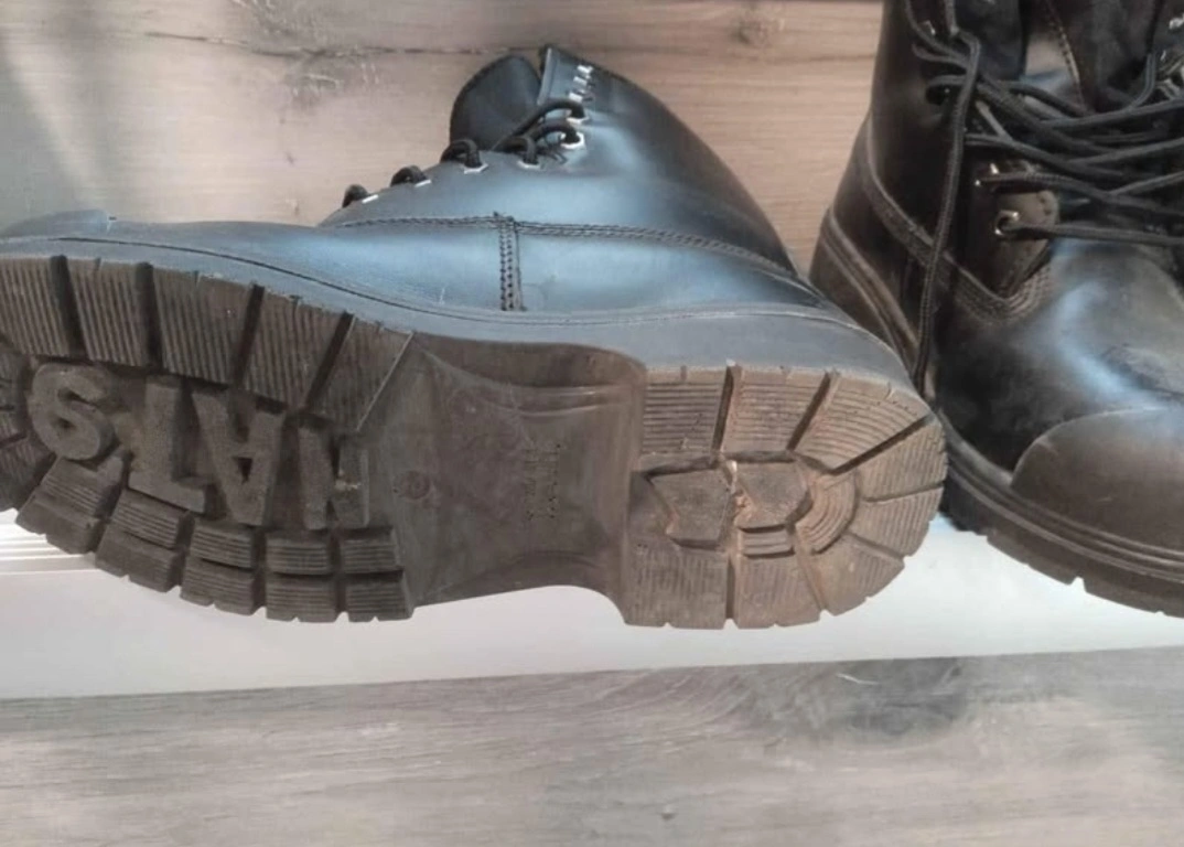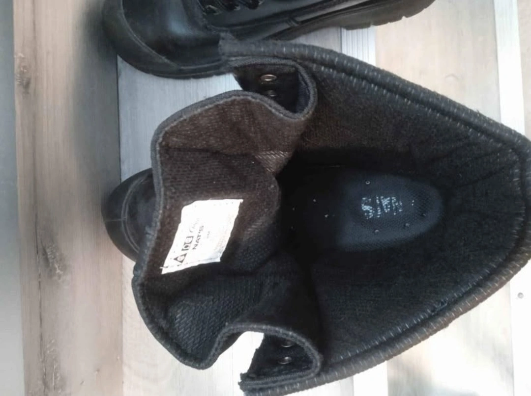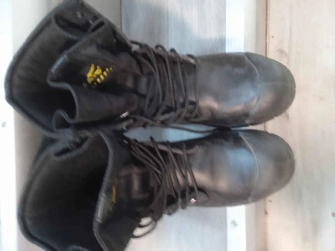 Pair of black leather work boots. Lace-up closure. Good condition. pickup from 120 primrose parkette.
