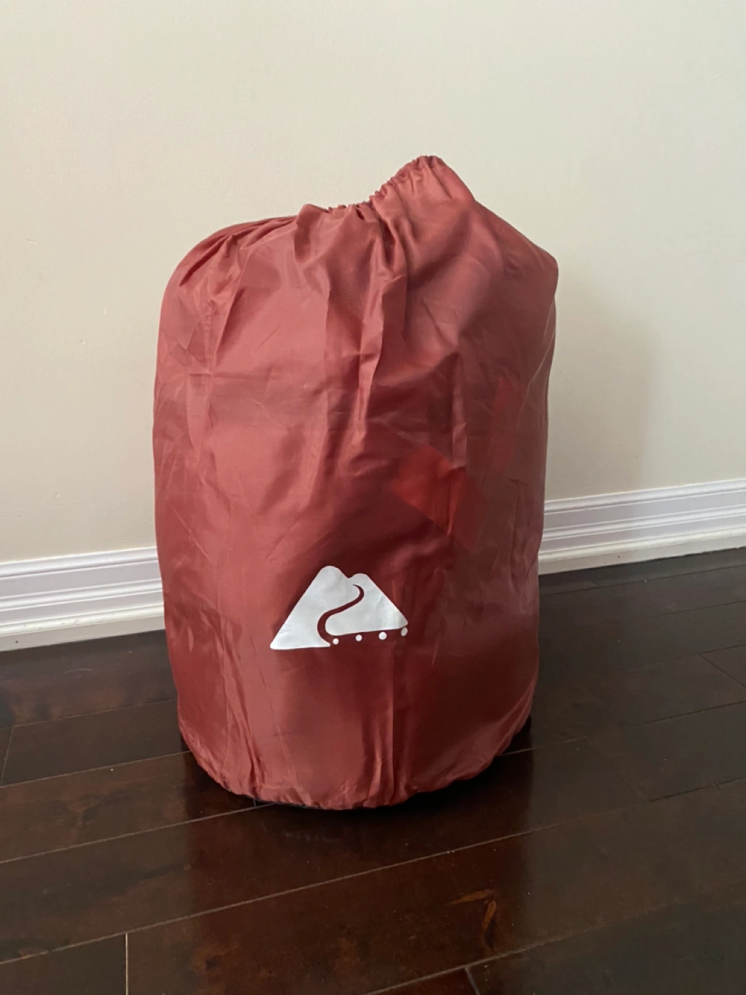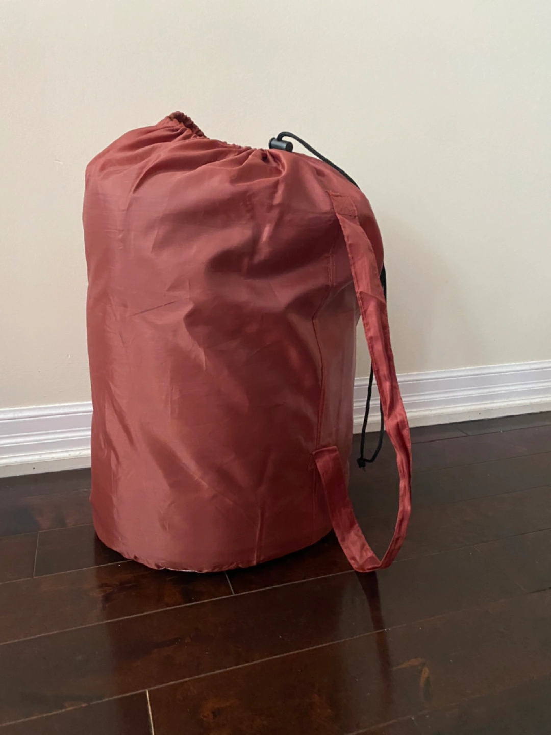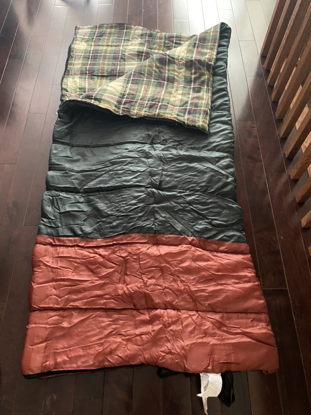 Elastic straps help keep the sleeping bag rolled. Made of polyester and cotton.