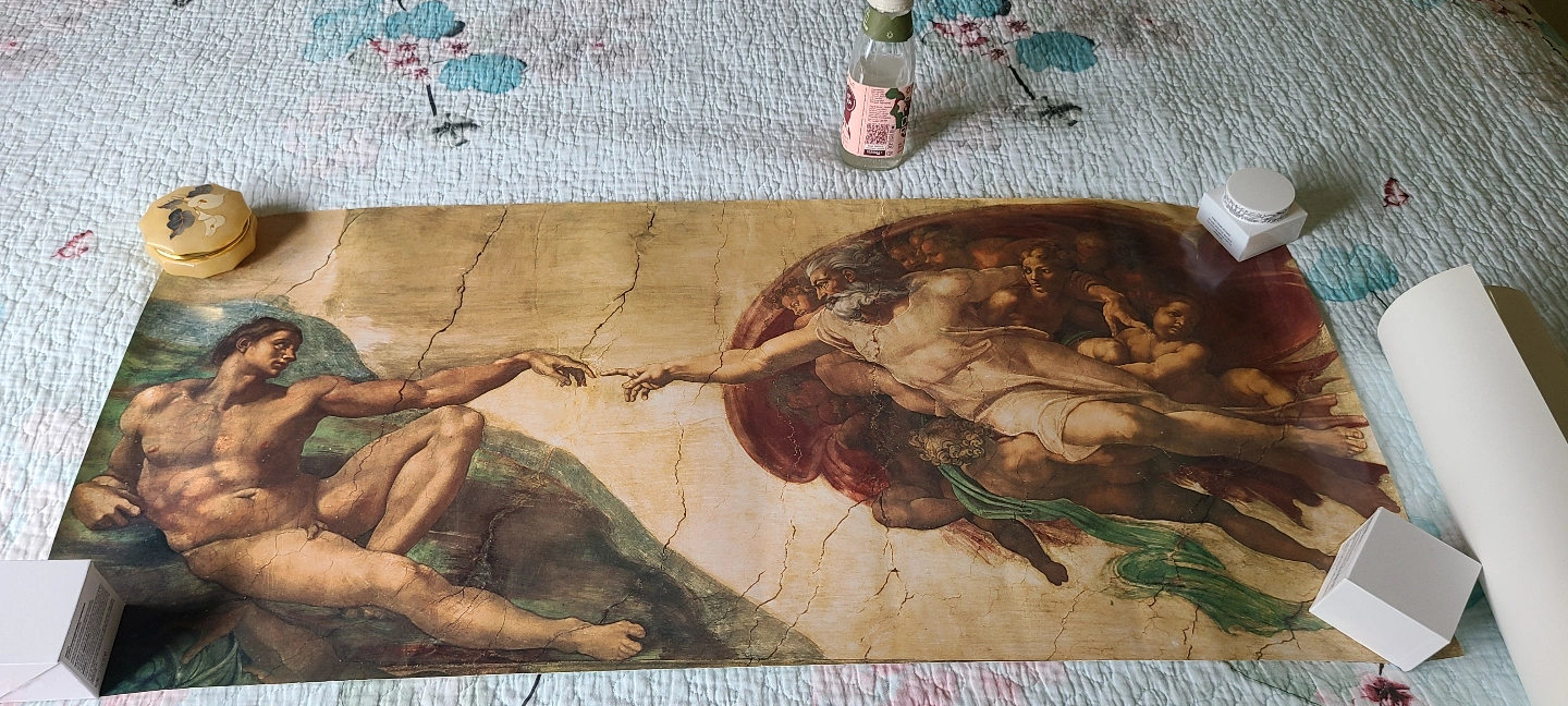 455Large poster print of Michelangelo's famous fresco The Creation of Adam. Excellent condition. Perfect for framing.