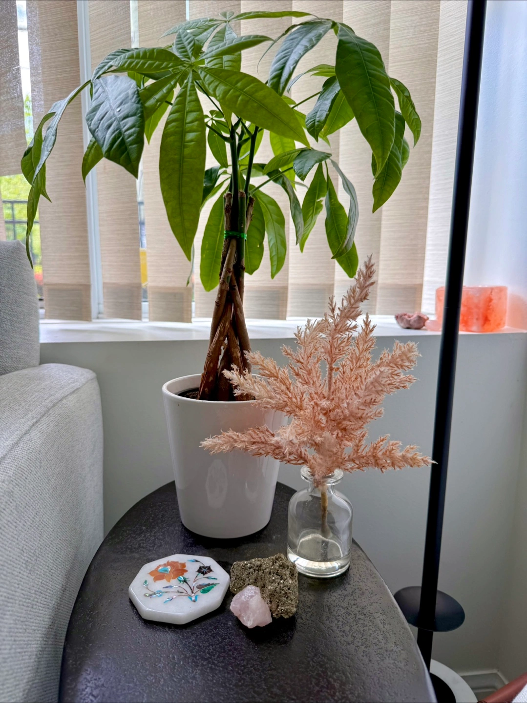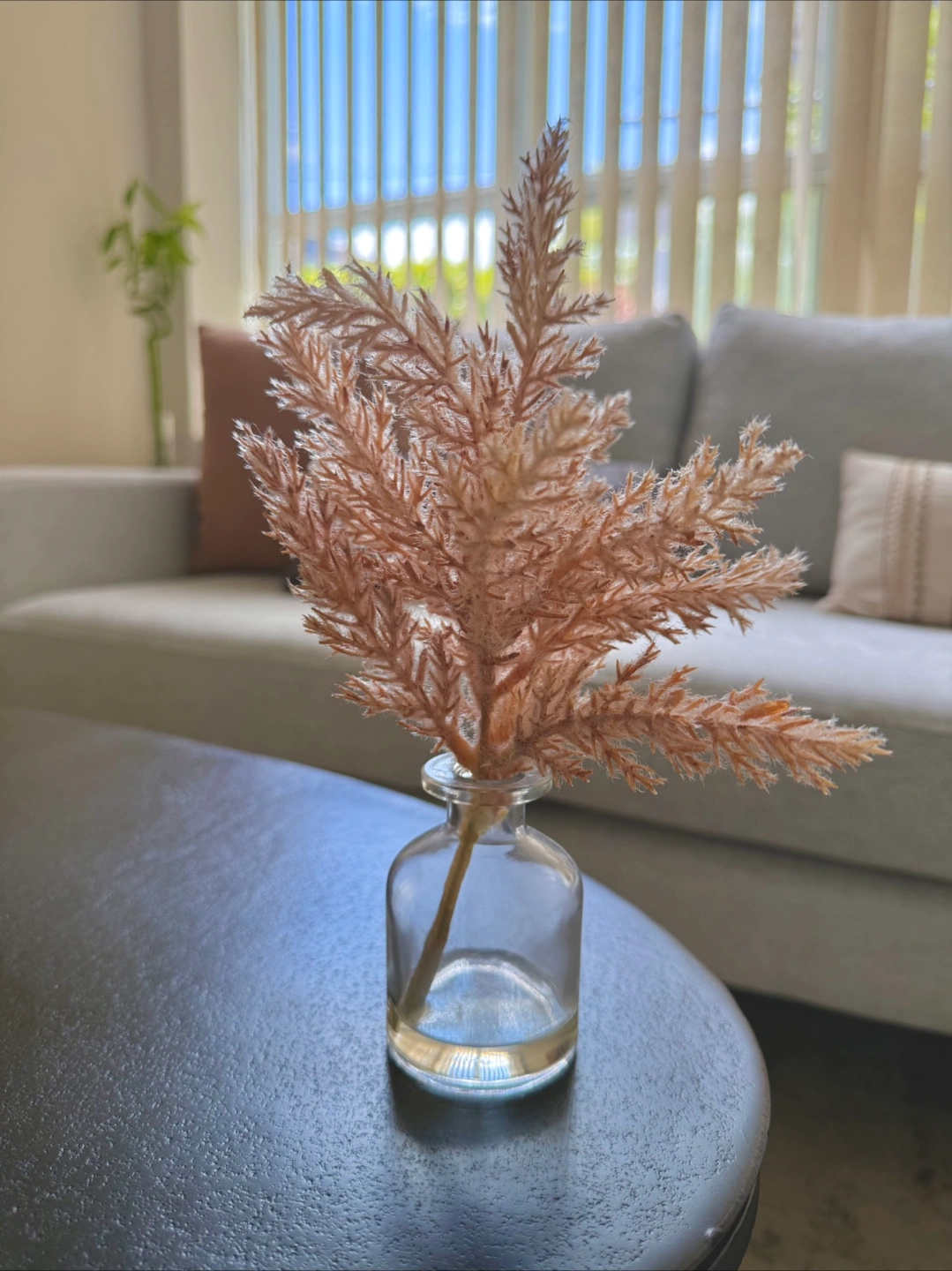 ✨ Small dried pampas grass arrangement ✨ Neutral coloured plumes. In a clear glass vase ✨ Perfect for small spaces or as a minimalist accent ✨Purchased from Linen Chest ✨ Original Price: $15