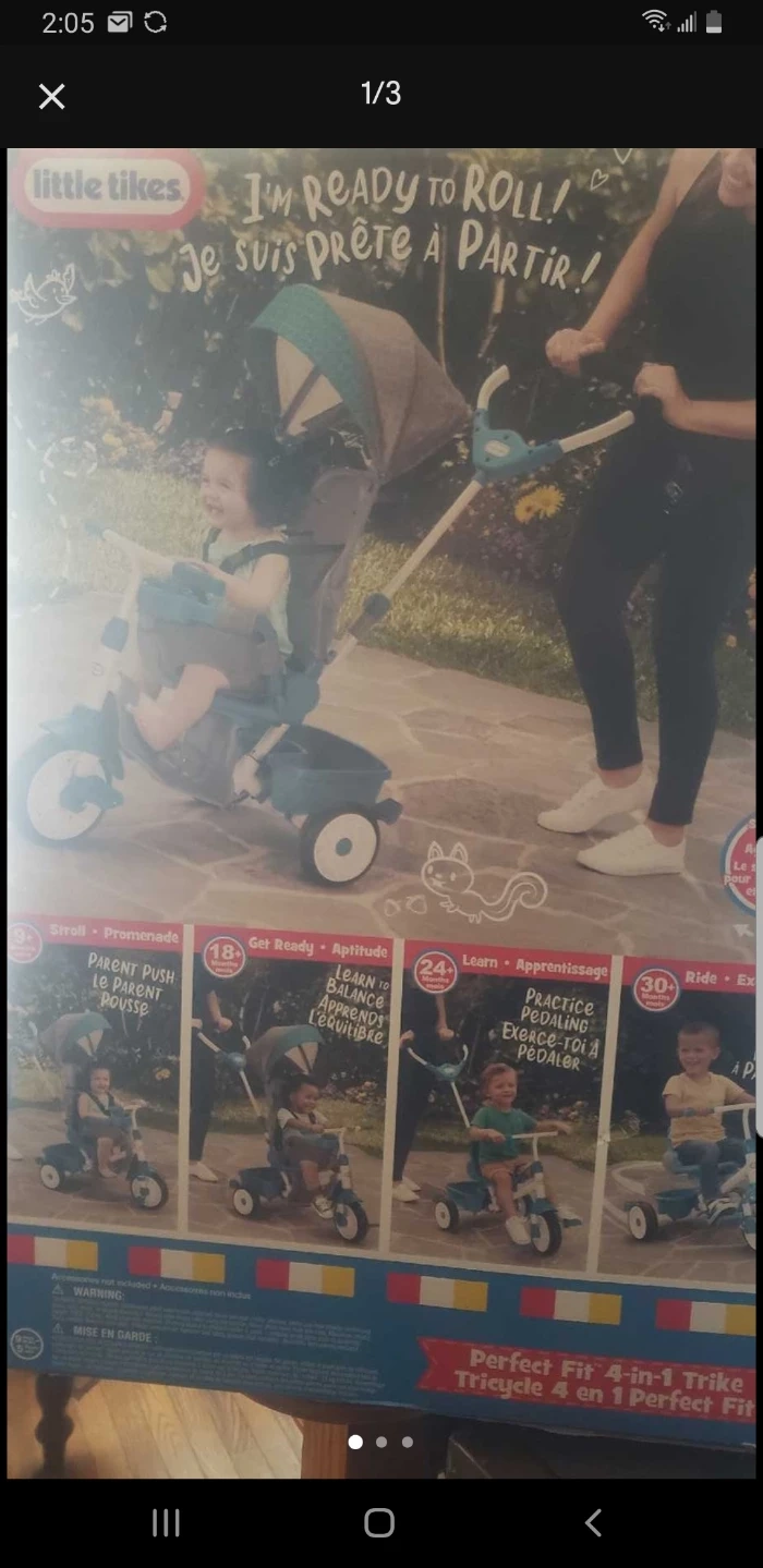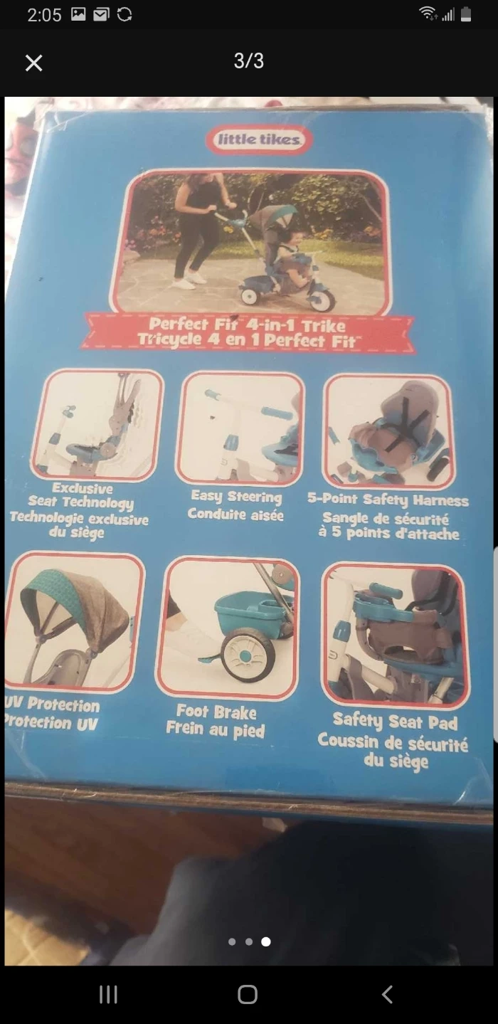 brand new Little Tikes 4-in-1 trike. Features parent push handle, adjustable canopy, five-point harness, and foot brake. Multiple stages for growing toddlers. 80 or best offer