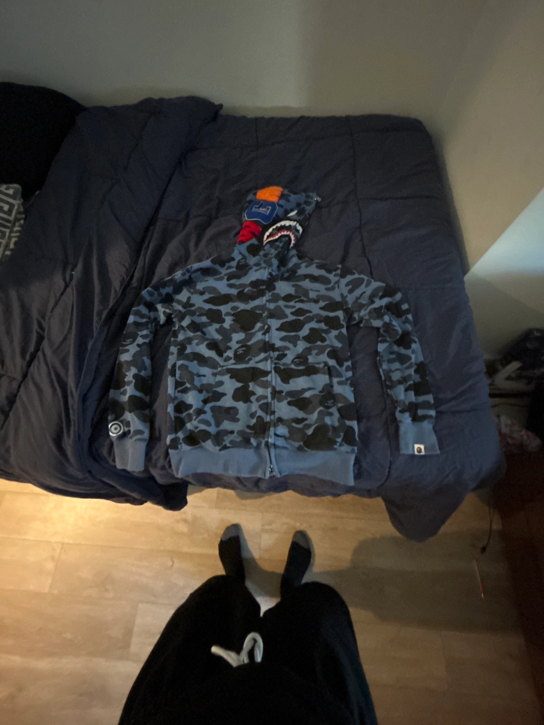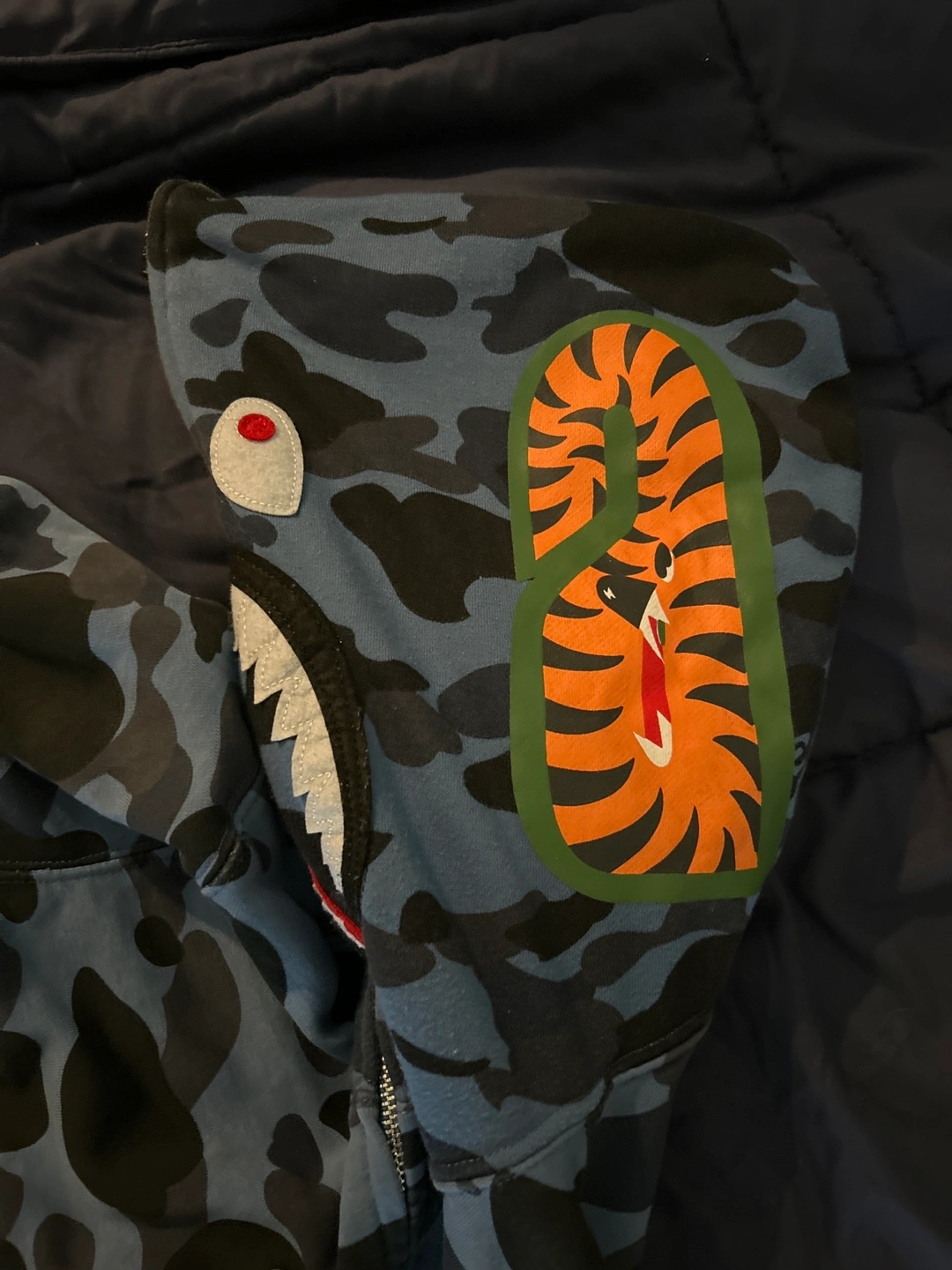 A Bathing Ape Blue Camo Shark Hoodie Size M