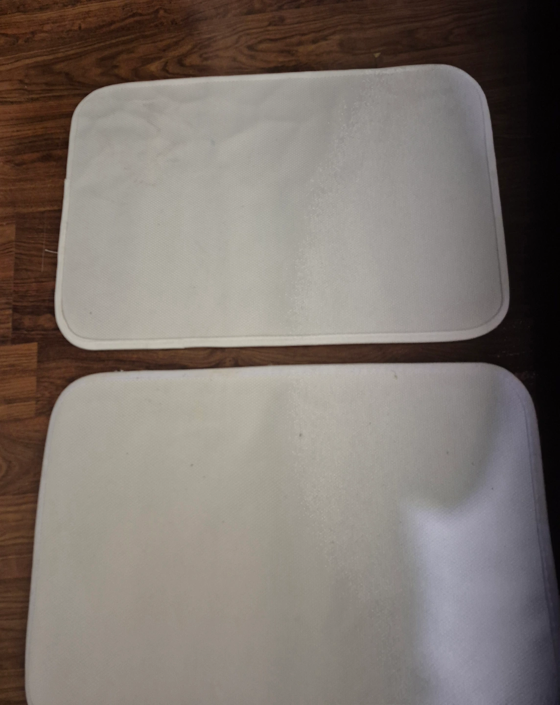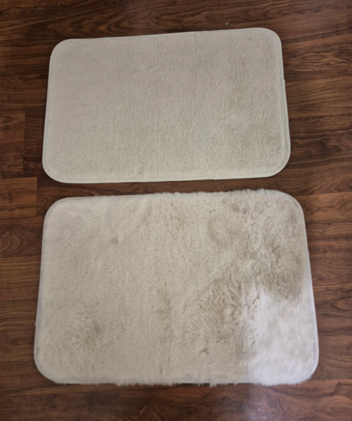 143Pair of off-white, fluffy bathroom mats. Soft and absorbent. Great for adding comfort to your bathroom. both for $5 π #freecycle
