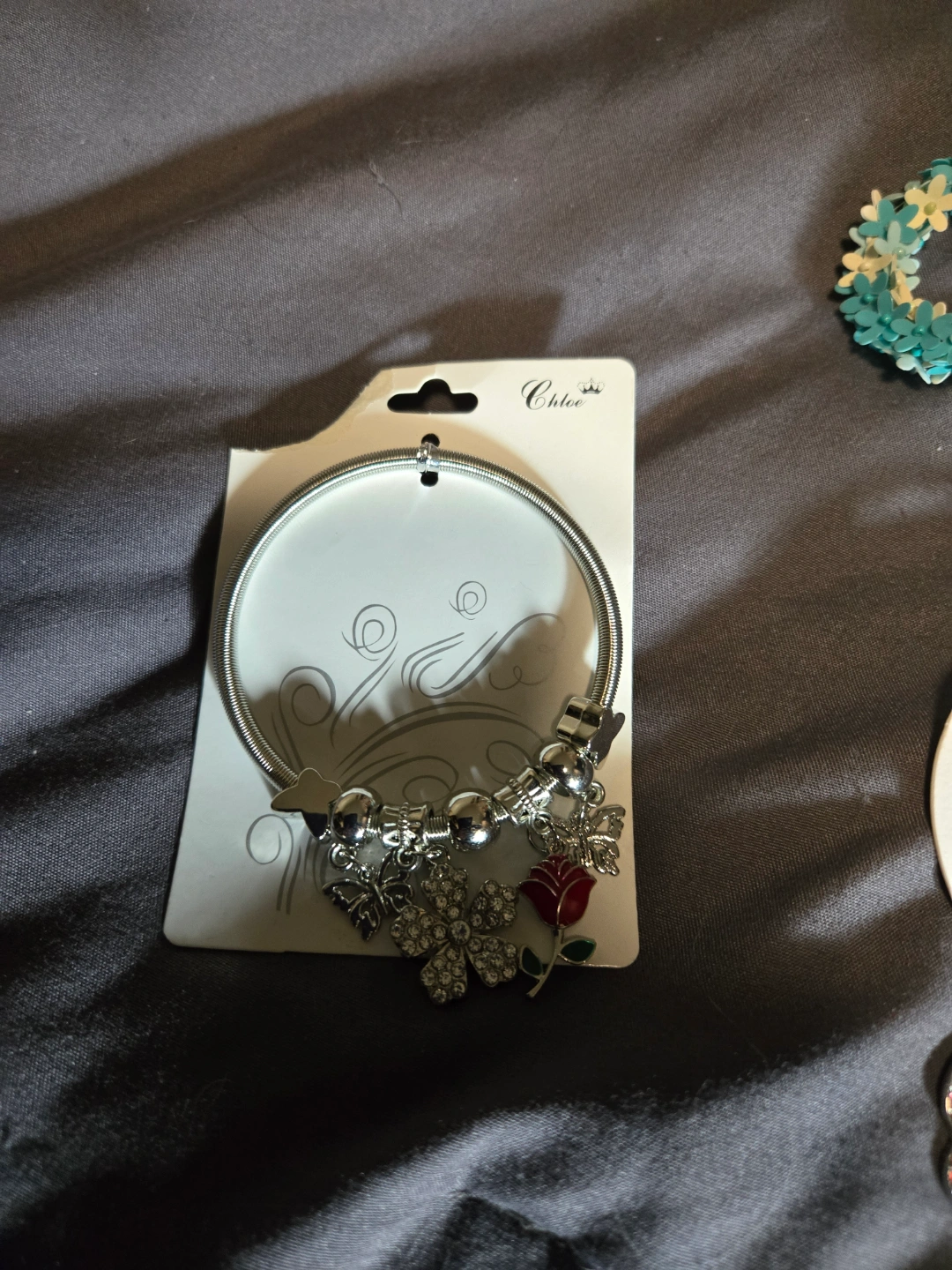Bulk lot of jewellery. Includes several pairs of earrings, a bracelet, and a keychain. Various styles and colours. Great for gifts or personal use.5 each