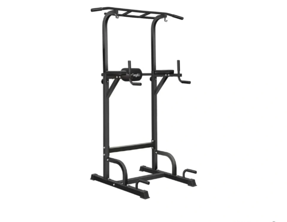 Freestanding pull-up and dip station. Durable steel construction. Multiple grip positions. Great for home workouts. Compact design.