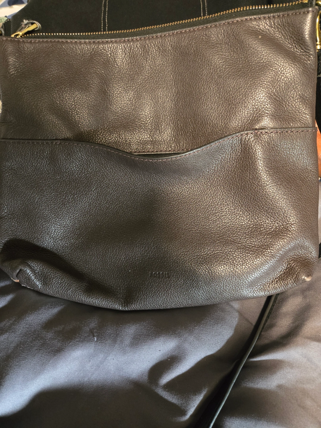 Multicoloured leather crossbody bag. Features a zip closure and adjustable strap. Roomy interior. Great for everyday use.
