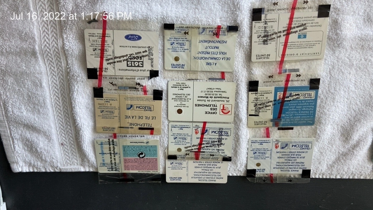 Assortment of vintage French Telecom phone cards. Various designs and denominations. Great for collectors.