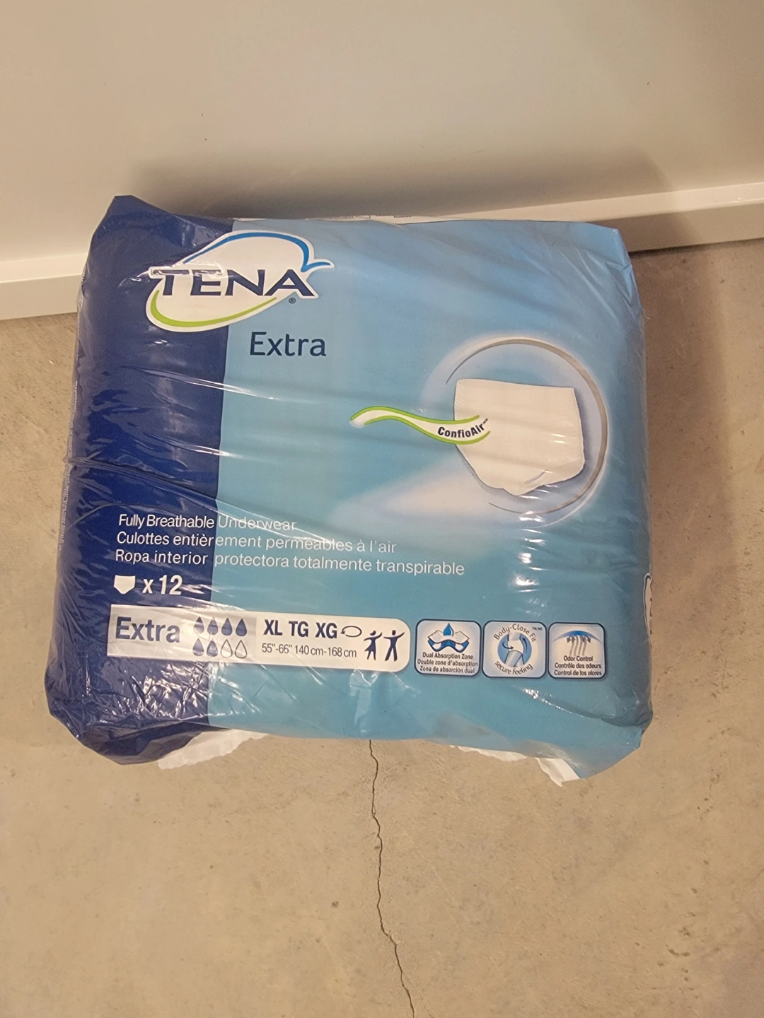 TENA Extra underwear. Fully breathable. Size XL TG XG. 12 count. New, unopened.