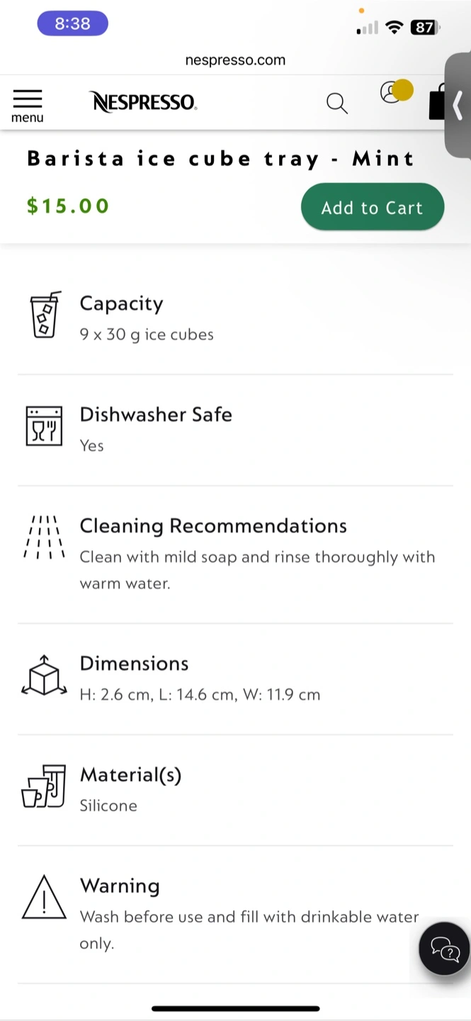 New Nespresso Barista ice tray for cold coffee recipes.