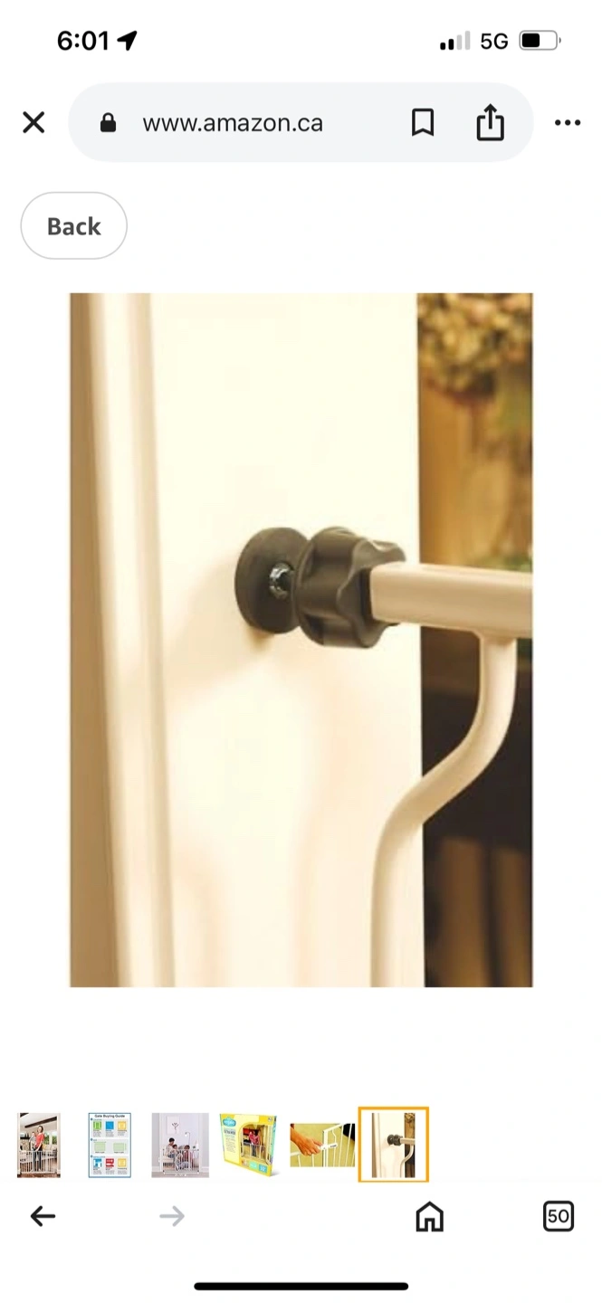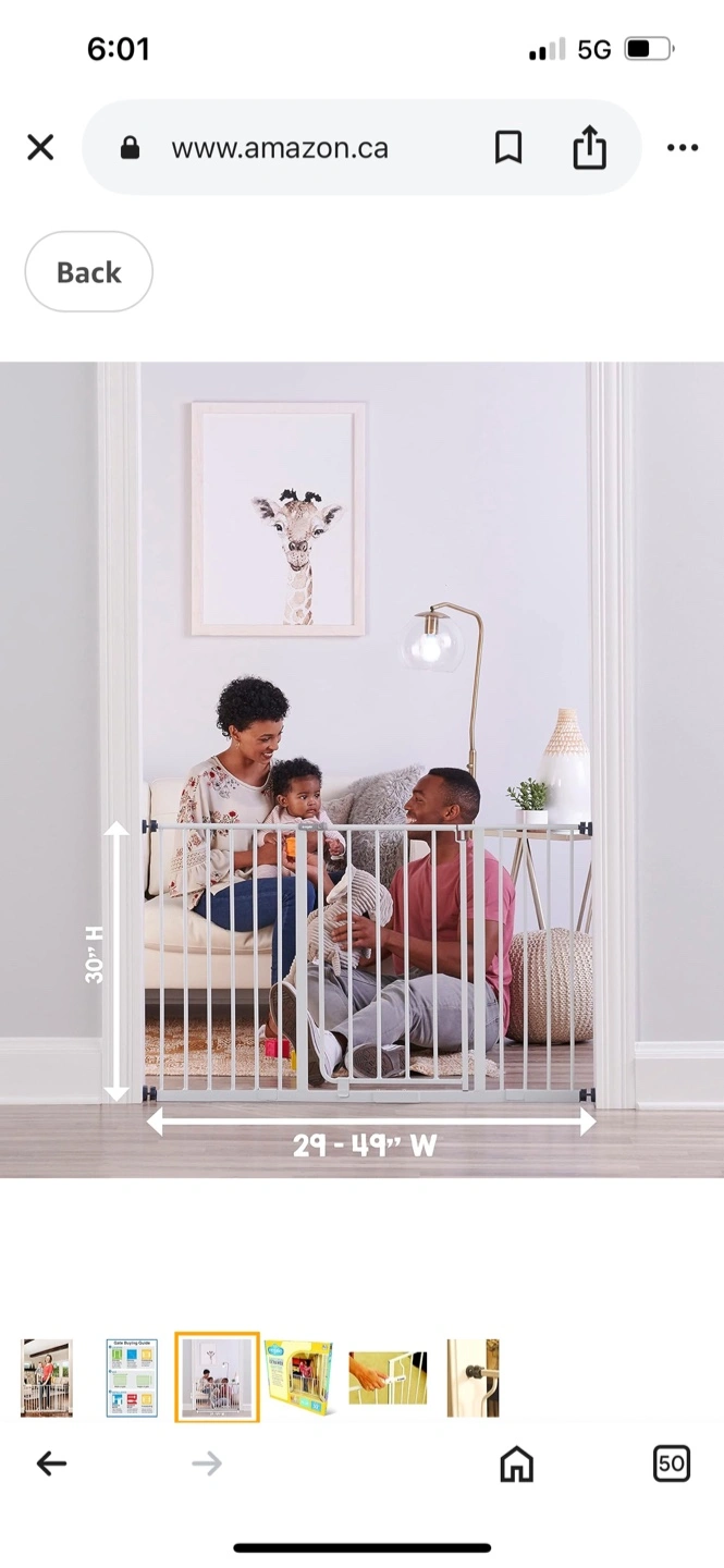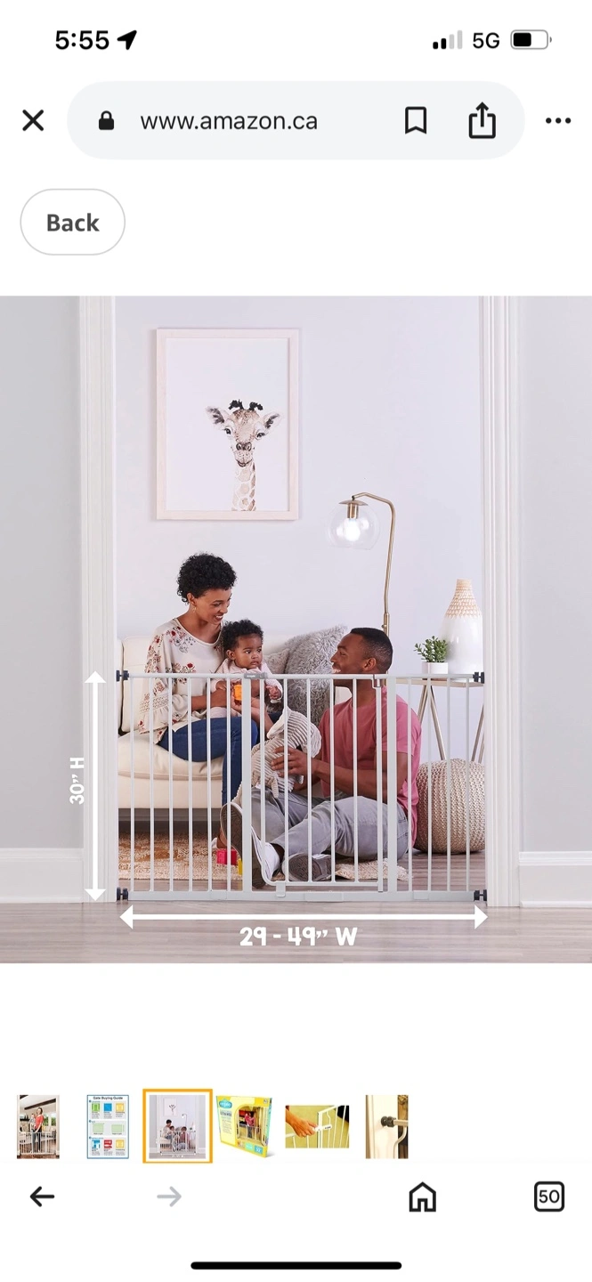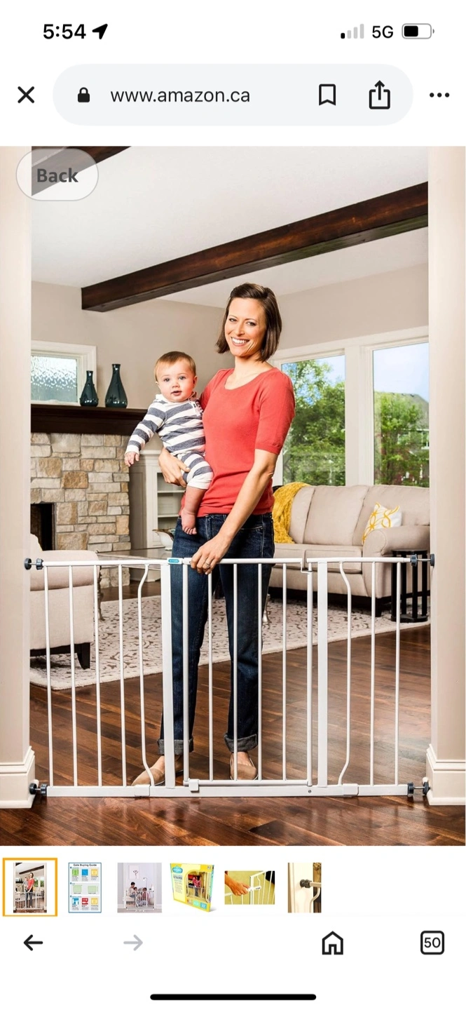 Amazon Price $65 White baby gate, easily adjustable width, pressure mounted. Suitable for doorways and hallways. 30"H x 29-49"W. Great for keeping little ones safe.