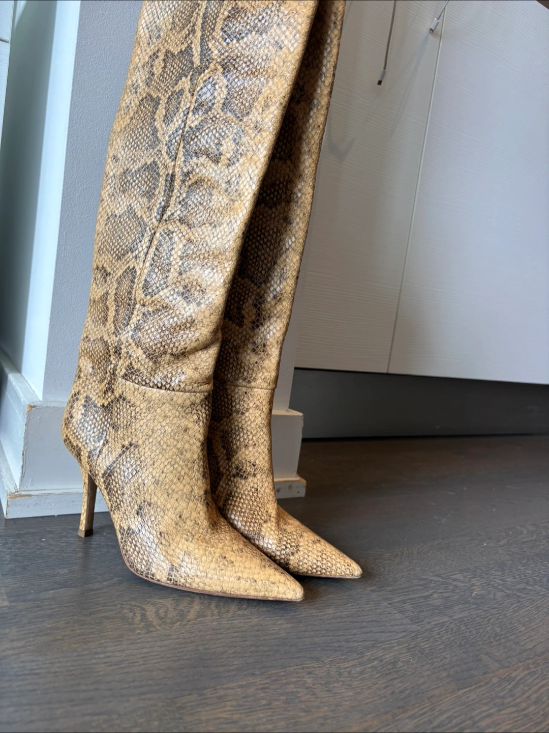 Paris Texas Python Print Knee-High Boots
