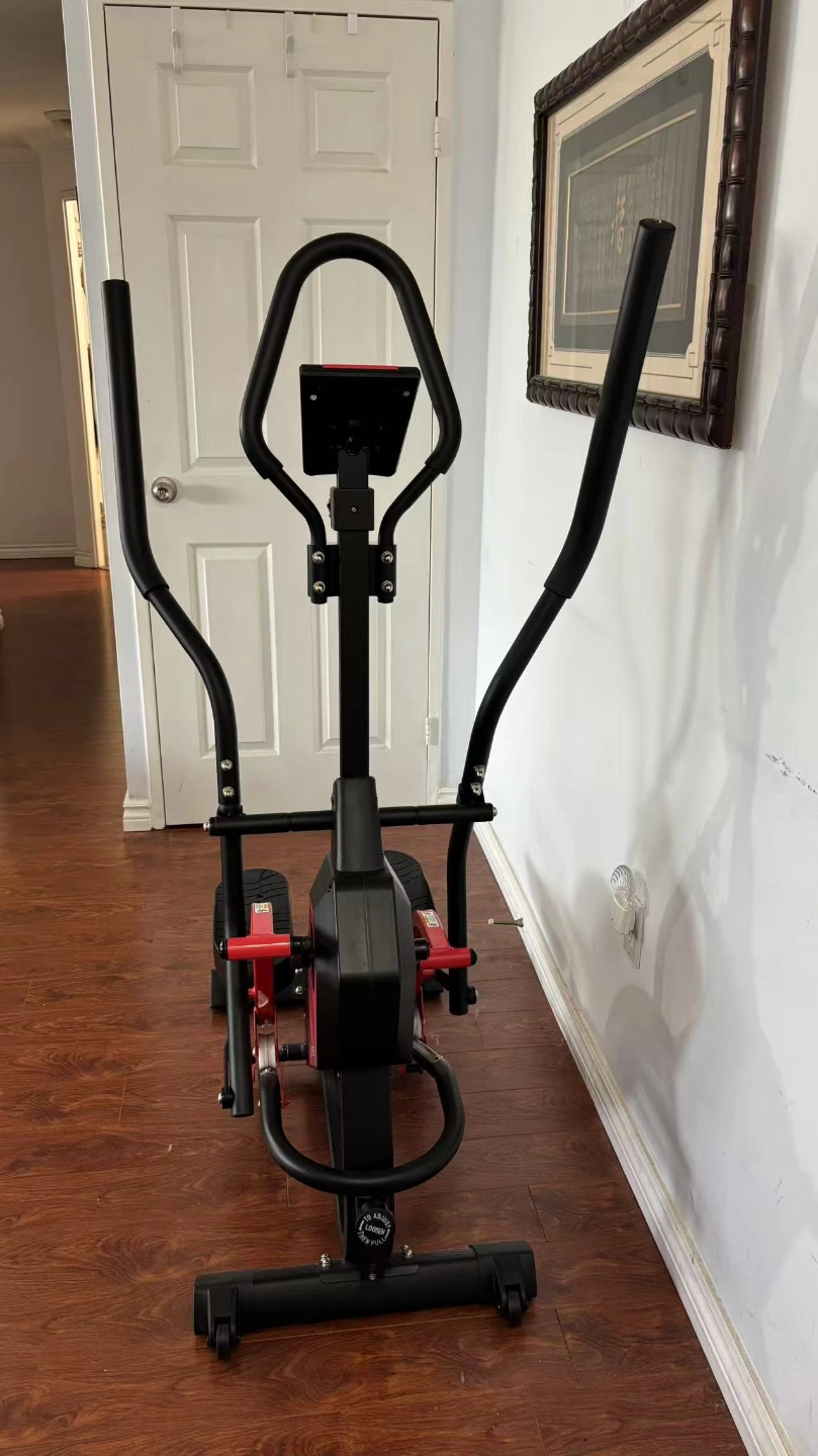 Compact elliptical trainer, great for home workouts. Features adjustable resistance and a digital monitor. Red and black colour scheme. Includes instruction manual. Hardly used. New Condition. Pick up McDonalds Warden and Sheppard. No delivery. Selling due to moving.