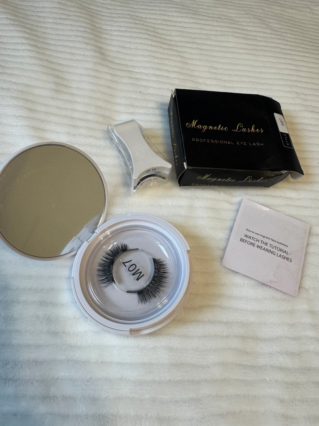 Magnetic eyelashes with applicator and case. New, unused. I bought them online for more than the price in the second slide but they’re the exact same product worth $24 +tax