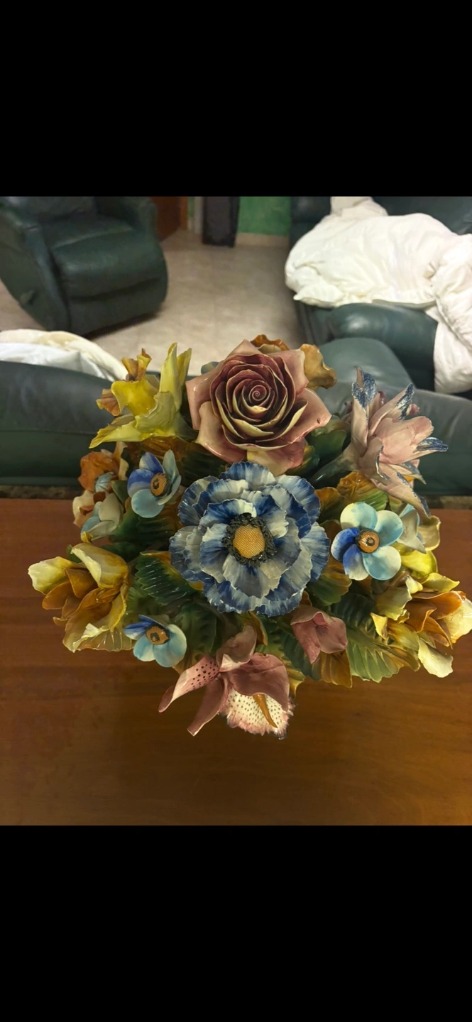 Beautiful vintage Italian ceramic flower bouquet. Handcrafted. Intricate details. Colorful flowers. Great centerpiece.