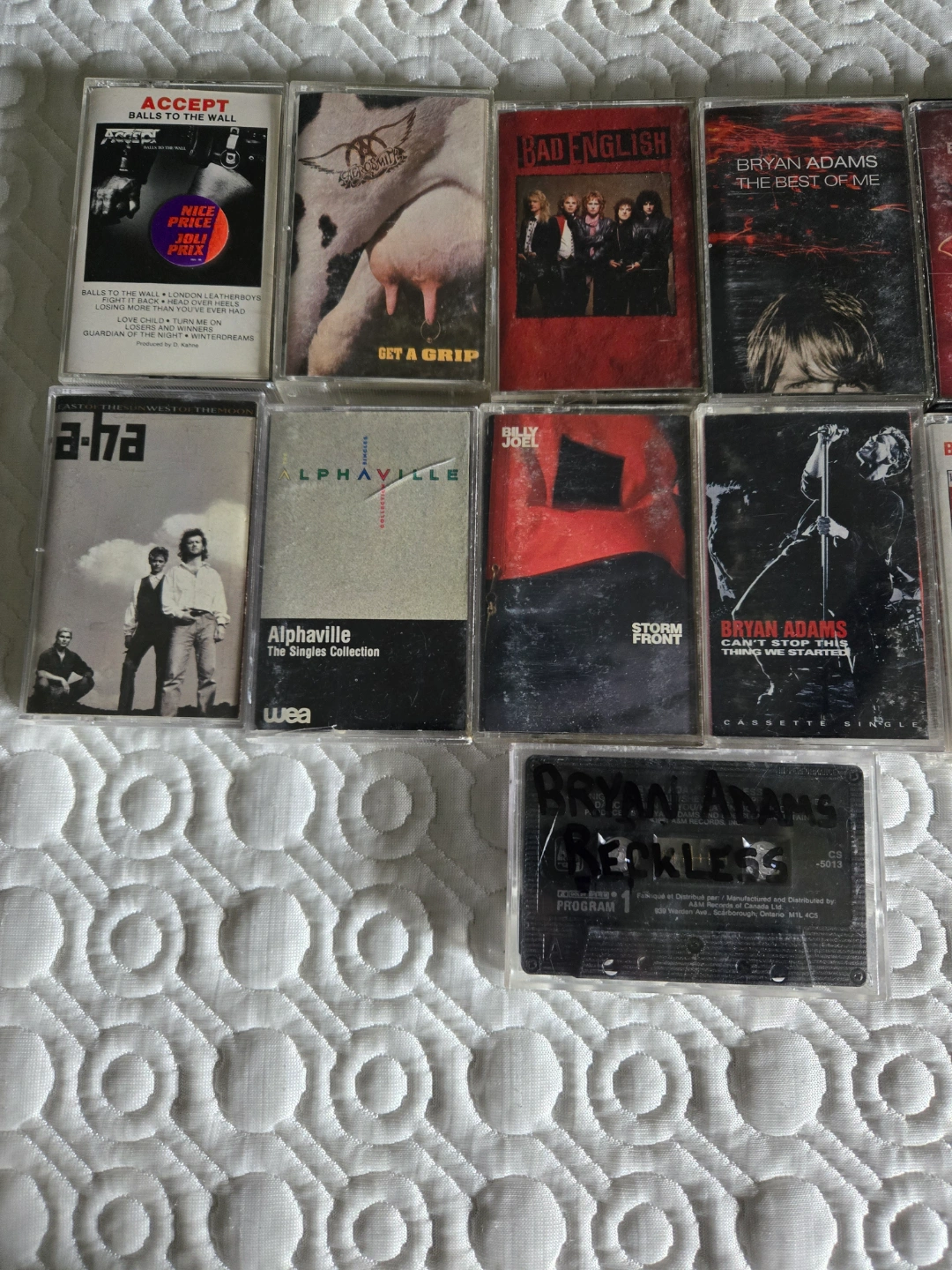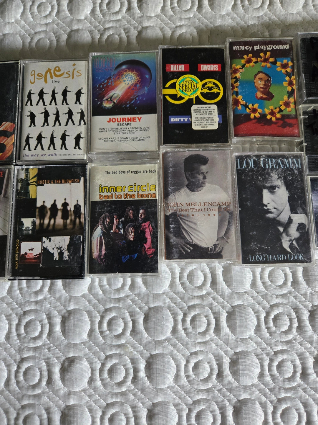 Several Different Bands like Bryan Adams, Aerosmith, The Beach Boys, UB40, Inner Circle, Sawyer Brown, Rush, Bruce Springsreen, Wilson Phillips, Rod Stewart and more... $1 a cassette or all of them for $35 Fourty two cassettes in total. Carrying Cases $5 each. Or everything for $40.