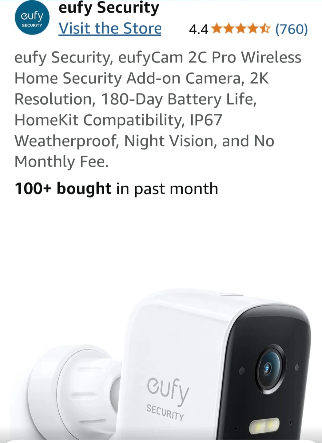 Eufy 2k Pro Security 3 Cameras Wireless 180 days Battery, outdoor or Indoor, No Cloud need, Night vision. Motion. Live streaming via app. Two-way audio, life time Eufy support.