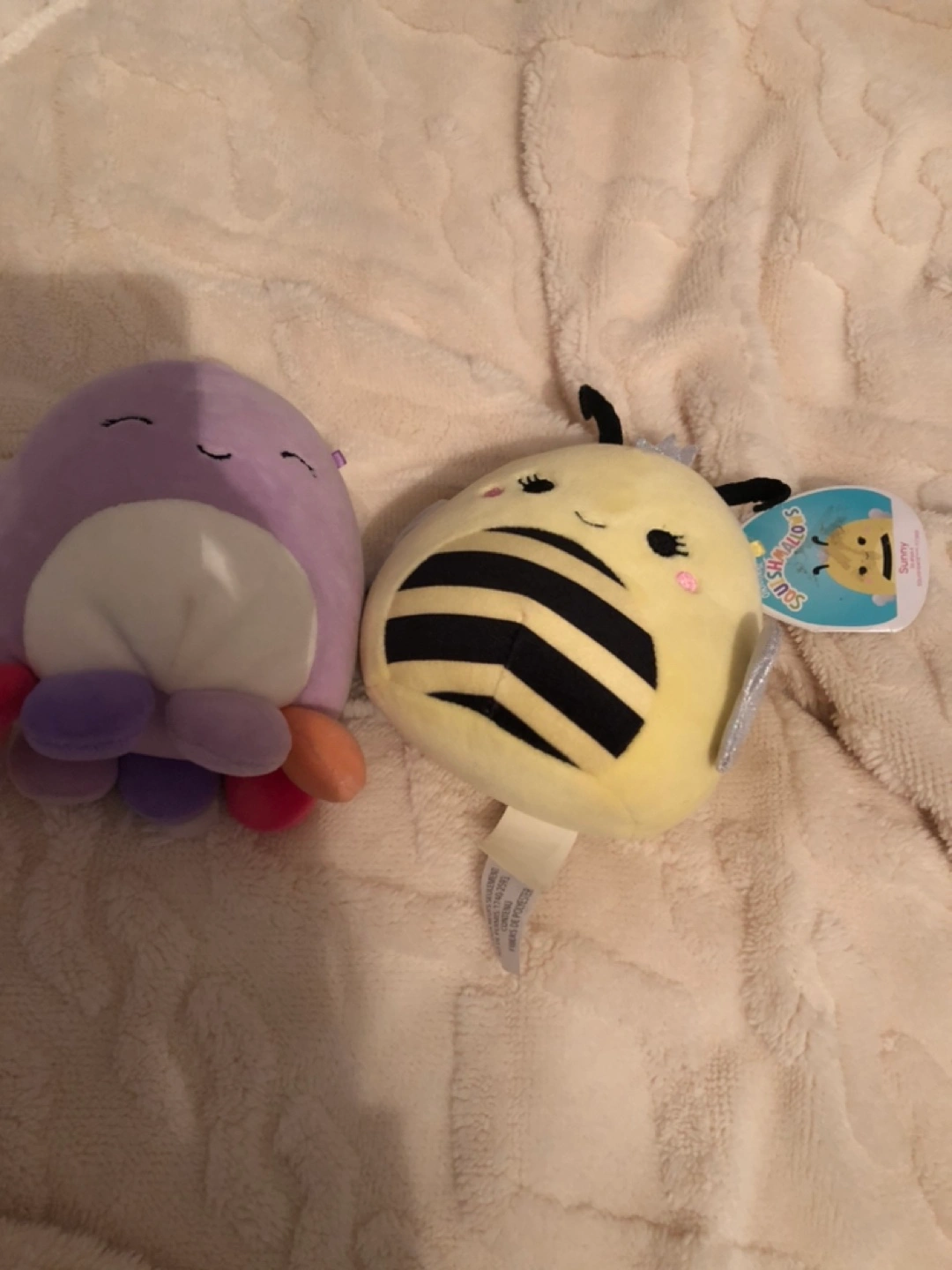 250Two adorable Squishmallows plush toys. One is a bee and one is an octopus. Both are approximately 8 inches tall. Perfect for collectors or children. Both retail for about $17, but I'm selling both for $10! Or, each for $7! Check out my other listings for more beauty or clothes!