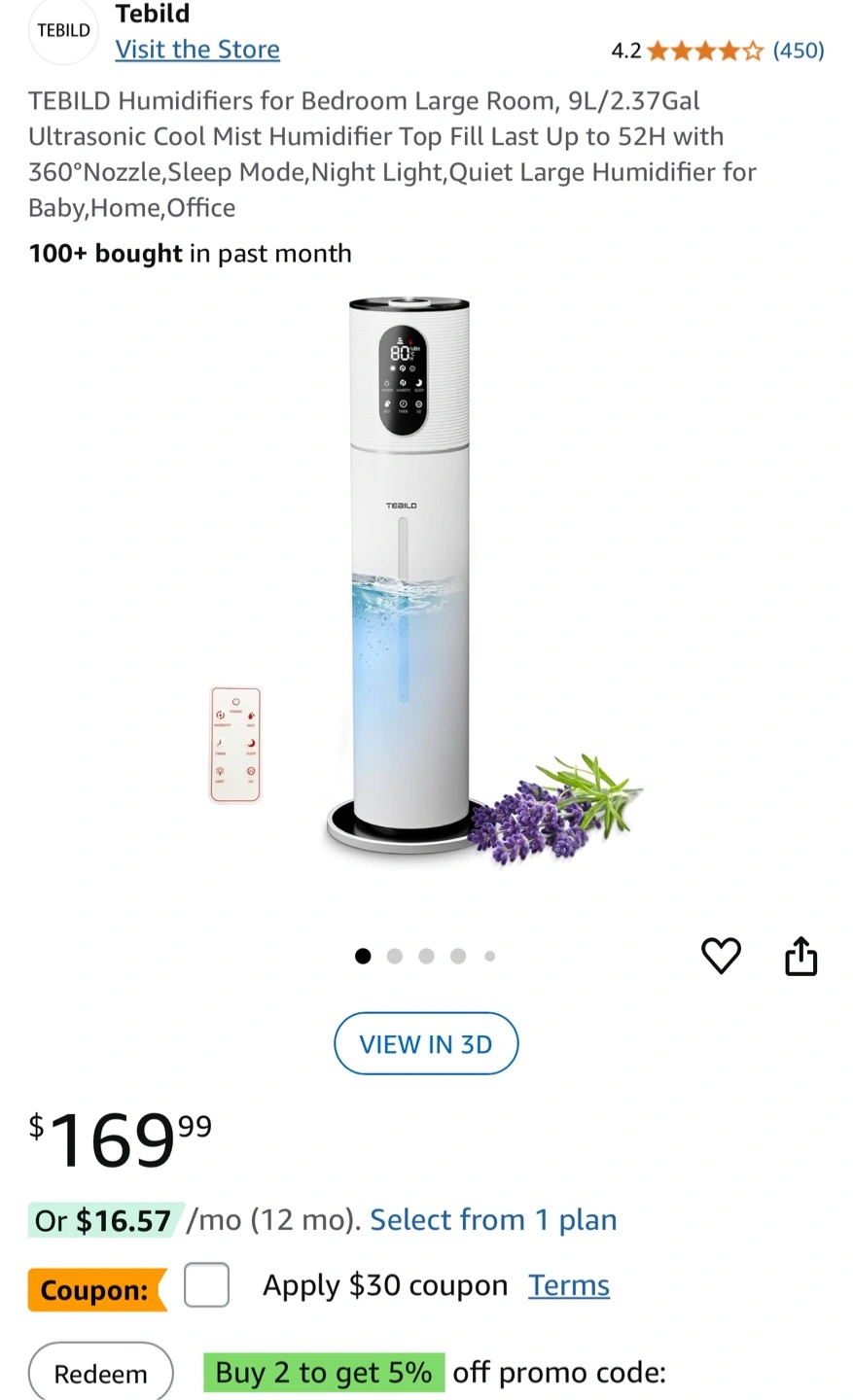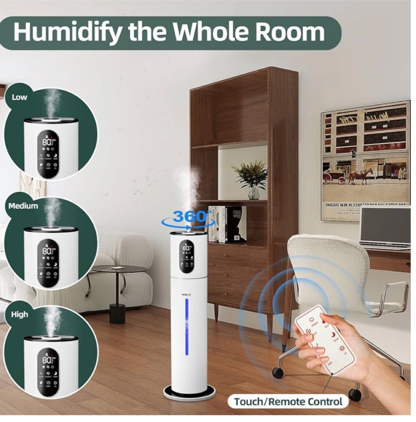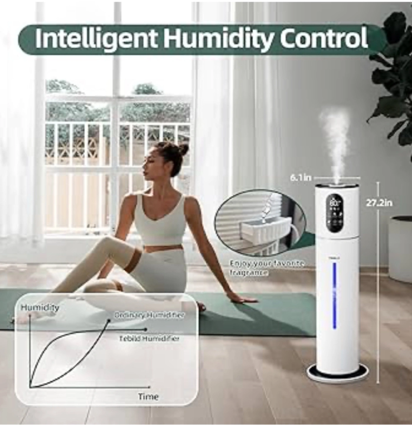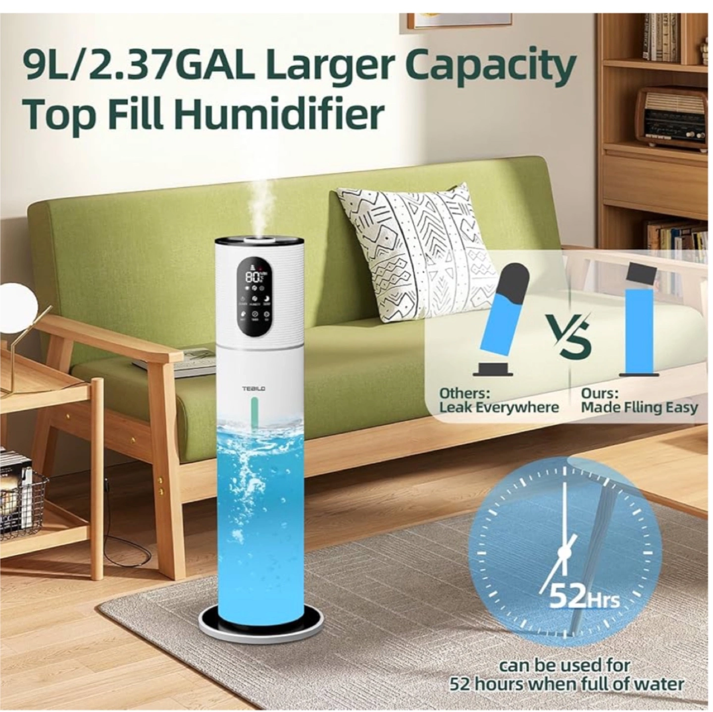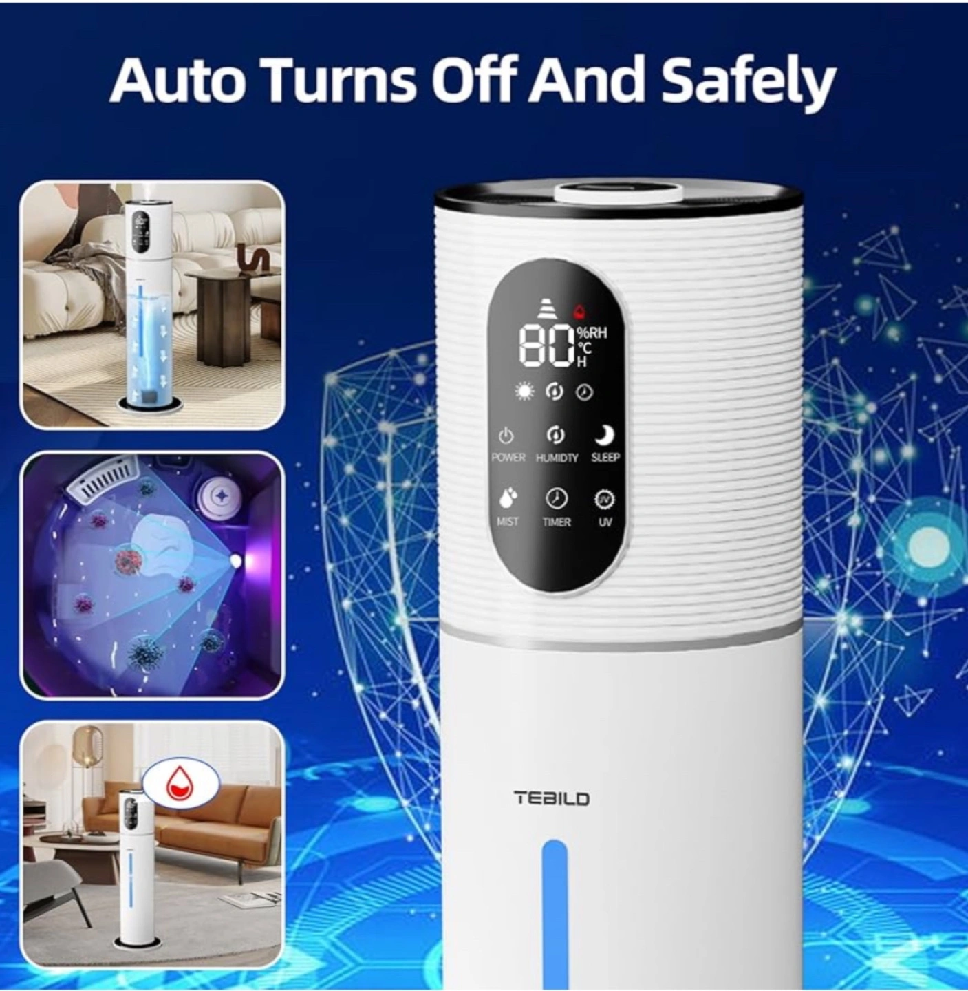 This item is brand new in box Pickup Location @ 100 Gowan Ave, East York TEBILD Humidifiers for Bedroom Large Room, 9L/2.37Gal Ultrasonic Cool Mist Humidifier Top Fill Last Up to 52H with 360°Nozzle,Sleep Mode,Night Light,Quiet Large Humidifier for Baby,Home,Office