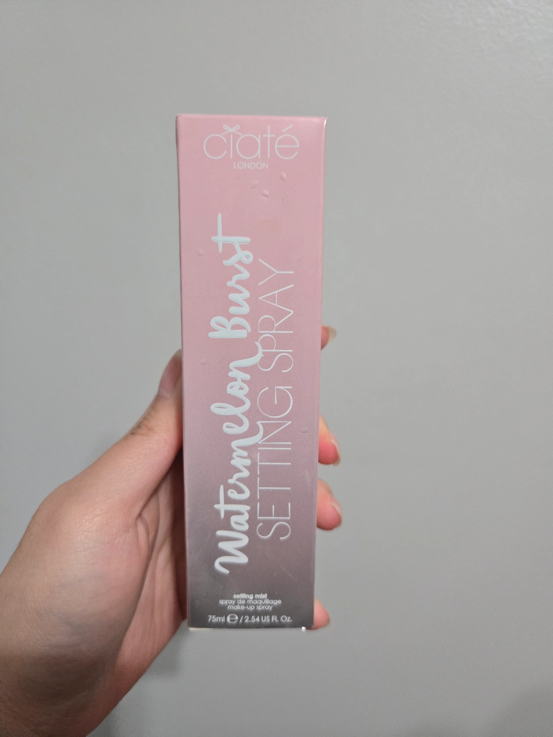 75ml dewy makeup setting spray. Watermelon scent. Top of box is ripped from when I wanted to look at the bottle but was never used.