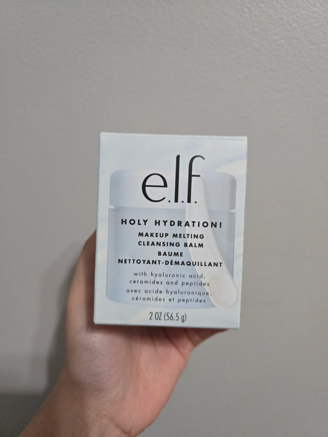 New, unopened e.l.f. Holy Hydration! Makeup Melting Cleansing Balm. 2 oz (56.5 g). Contains hyaluronic acid, ceramides and peptides.