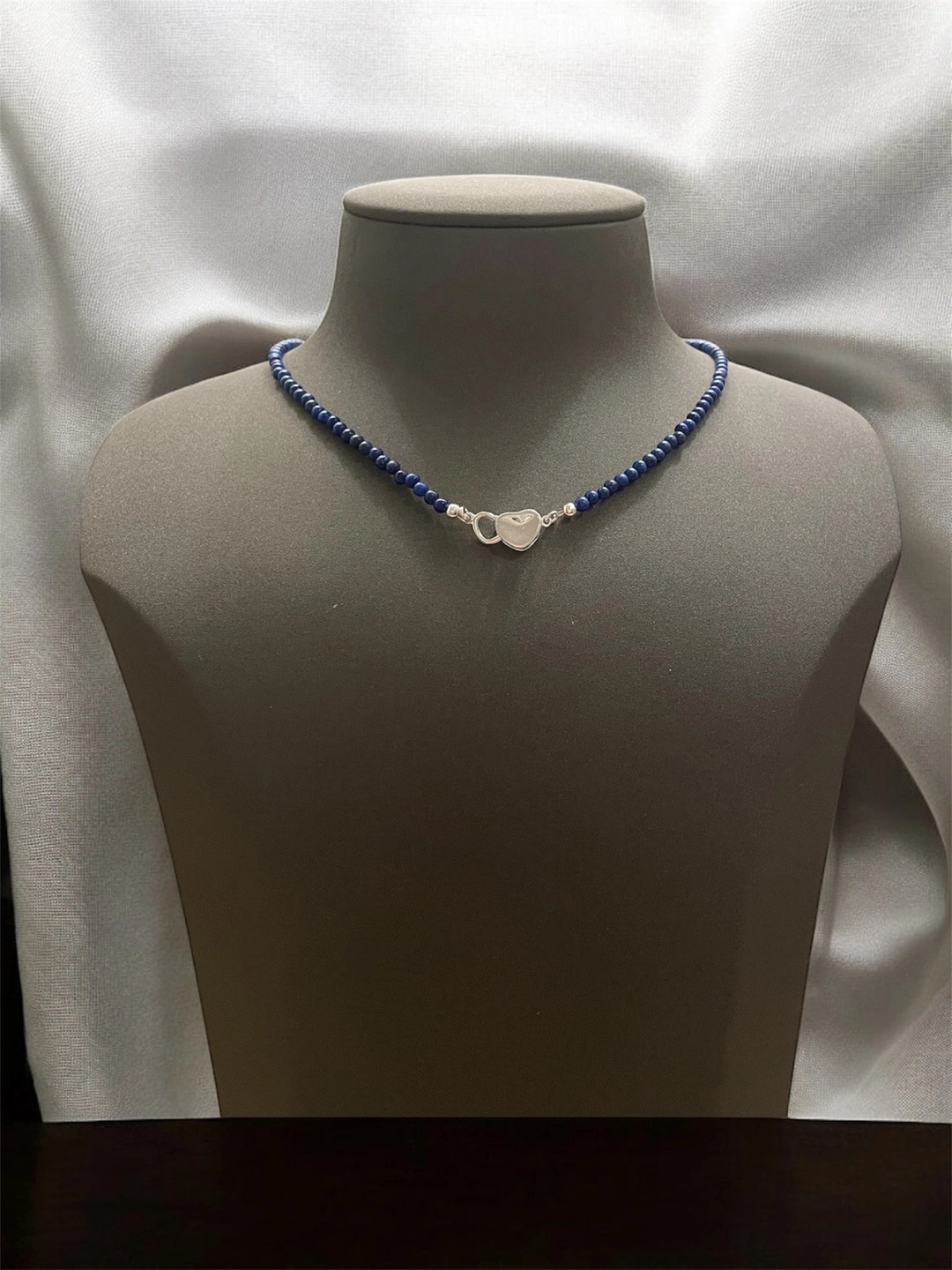 Lapis Lazuli Beaded Necklace with Heart Clasp