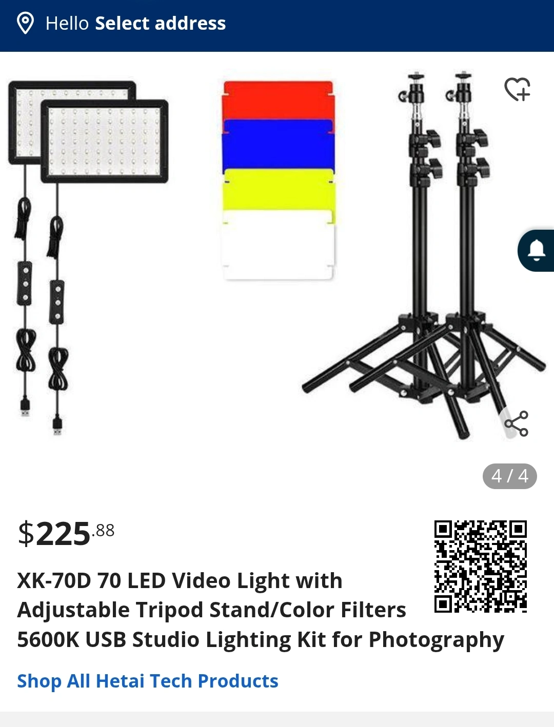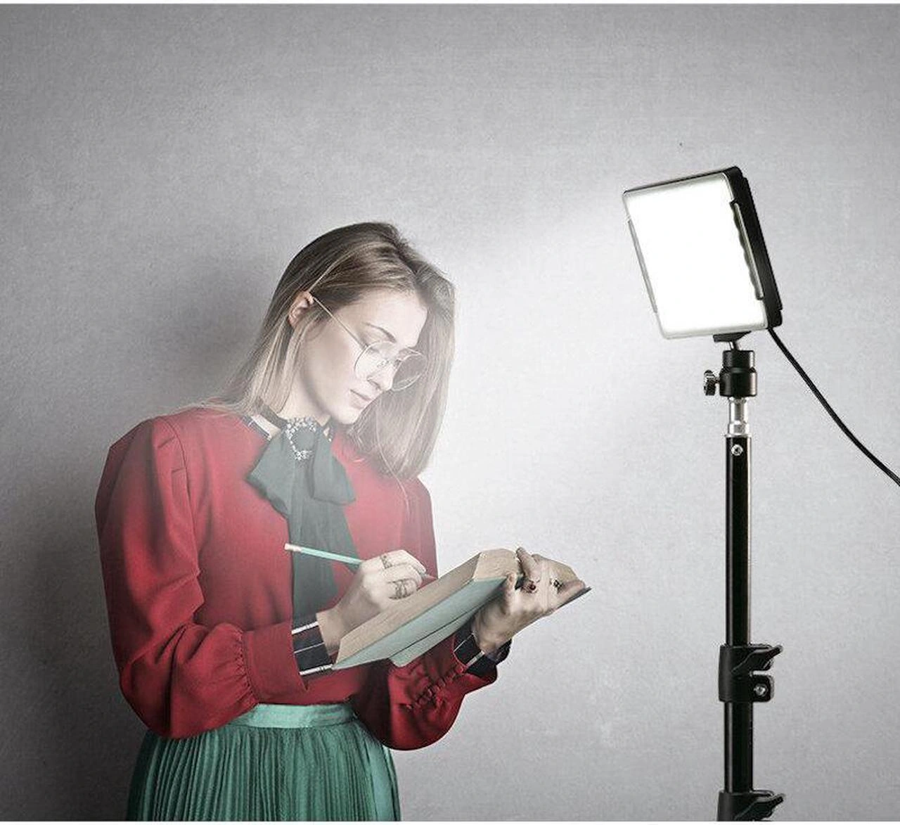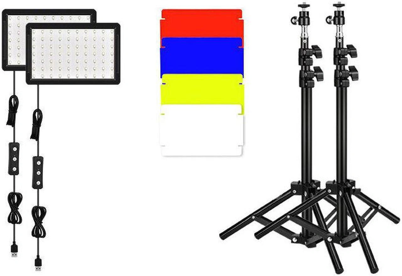1000+Two 10W LED photography lights. 50000-hour lifespan. Colour temperature 5600K. Includes two adjustable tripods and colour filter set (red, blue, yellow, white). USB powered. Dimmable 10%-100%.