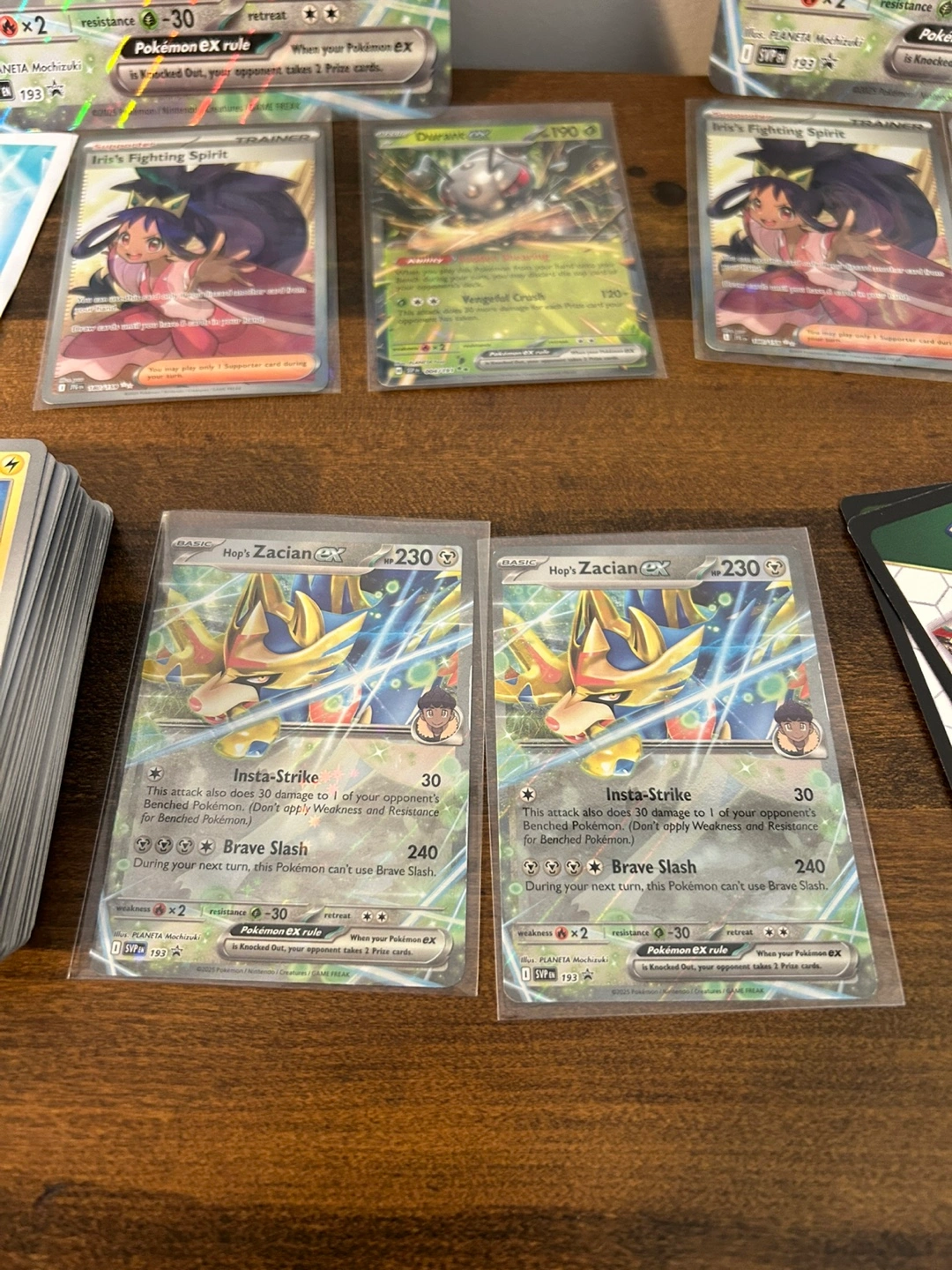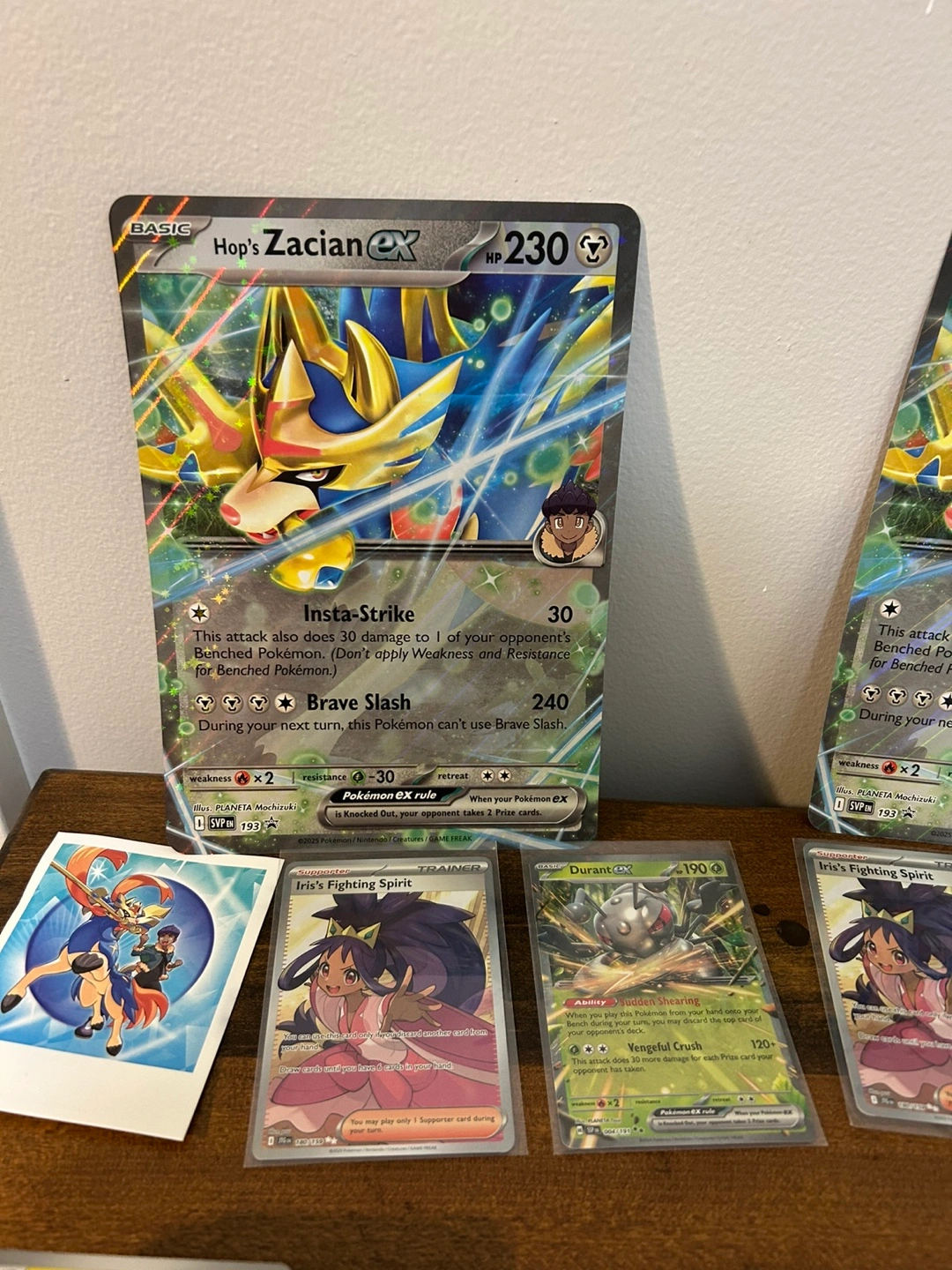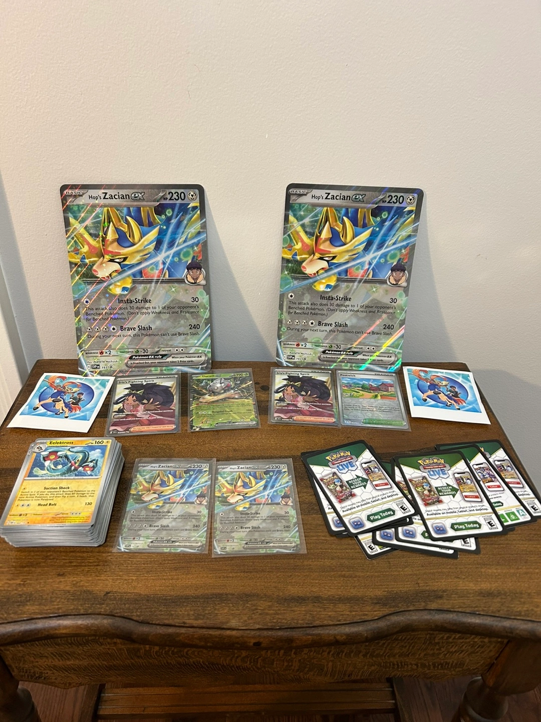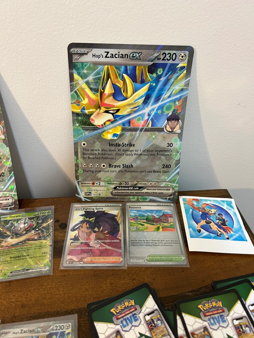 Selling a small lot of Journey together cards, oversized cards, bulk cards and stickers! Everything is in NM / M condition. Good for any fan, collector, kids or someone wanting some cards to get into the hobby! Included: Iris Fighting Spirit x2 Hops Zacian Oversized Promo X 2 Hops Zacian Promo card x2 Other various Journey Cards Bulk 2 Journey together stickers Take it all for $15 cash OBO. Would consider a small trade for a card or two or some sealed packs. Pickup in Etobicoke / delivery available within a reasonable distance.