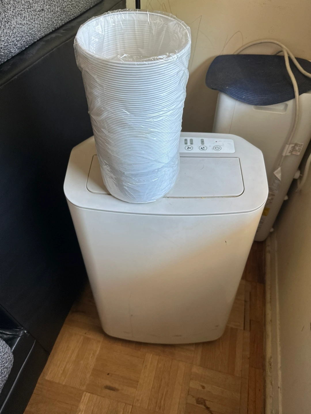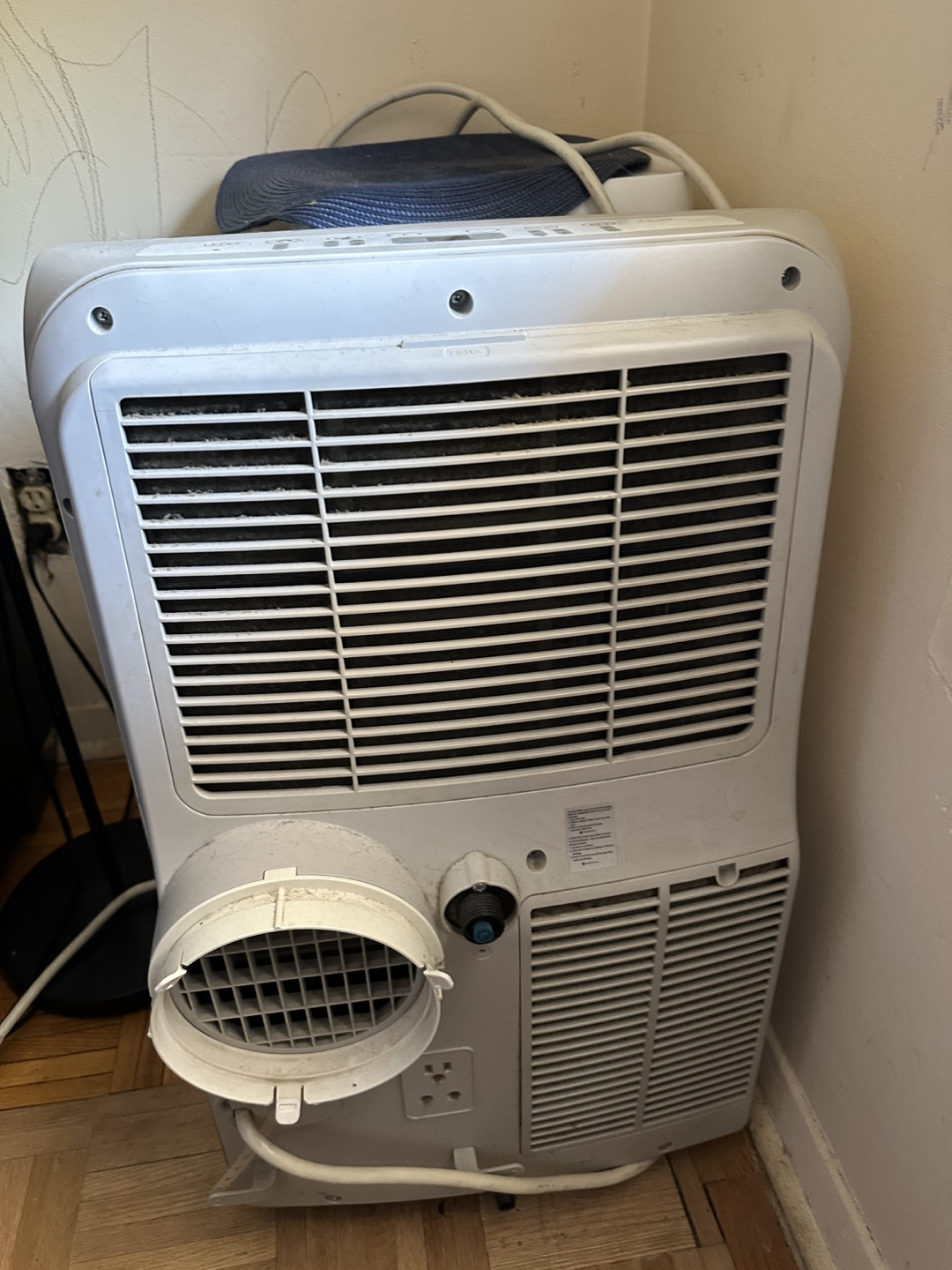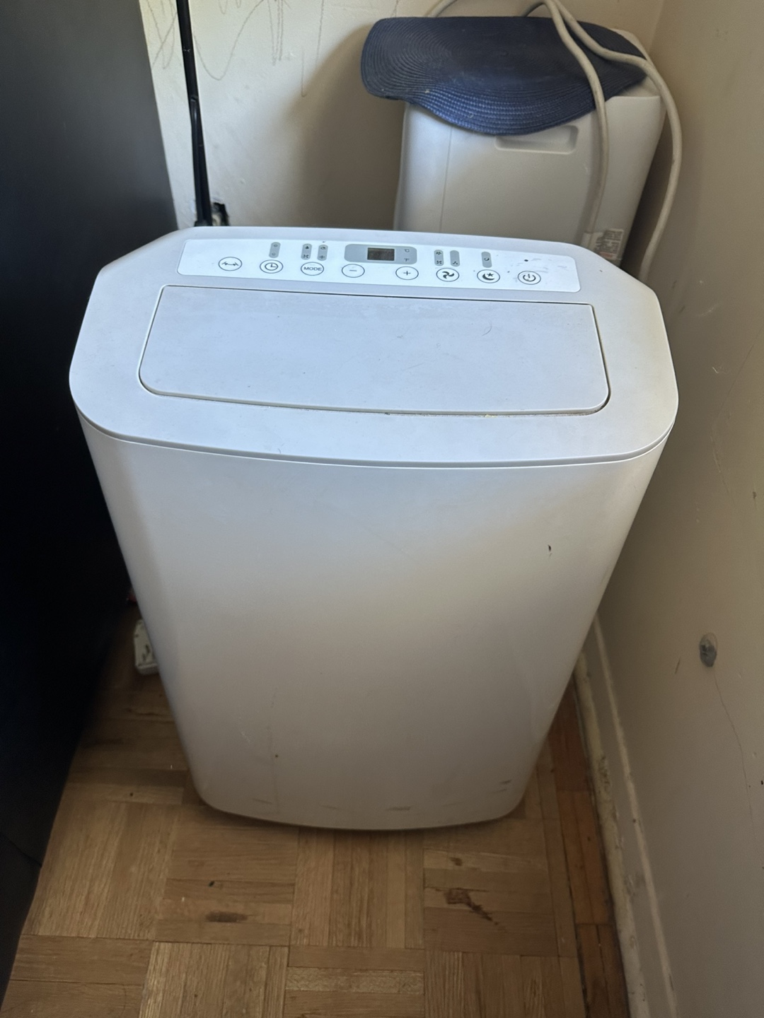 Used portable air conditioner. BTU 12,000 Includes exhaust hose. Still has factory plastic by the controls Some cosmetic wear nothing serious. We used it once and bought it for $150. It works really well itās just too big for my place.