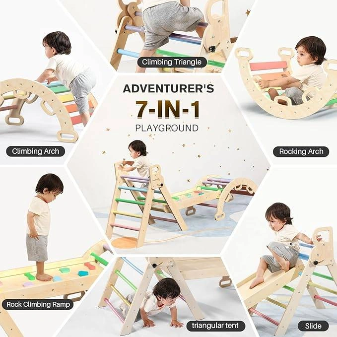 7 IN 1 Play Mode: 2024 upgraded Pikler Triangle set includes Triangle ladder & Slide & Arch ladder. Allows your baby to create at least 7 different modes for more play possibilities
