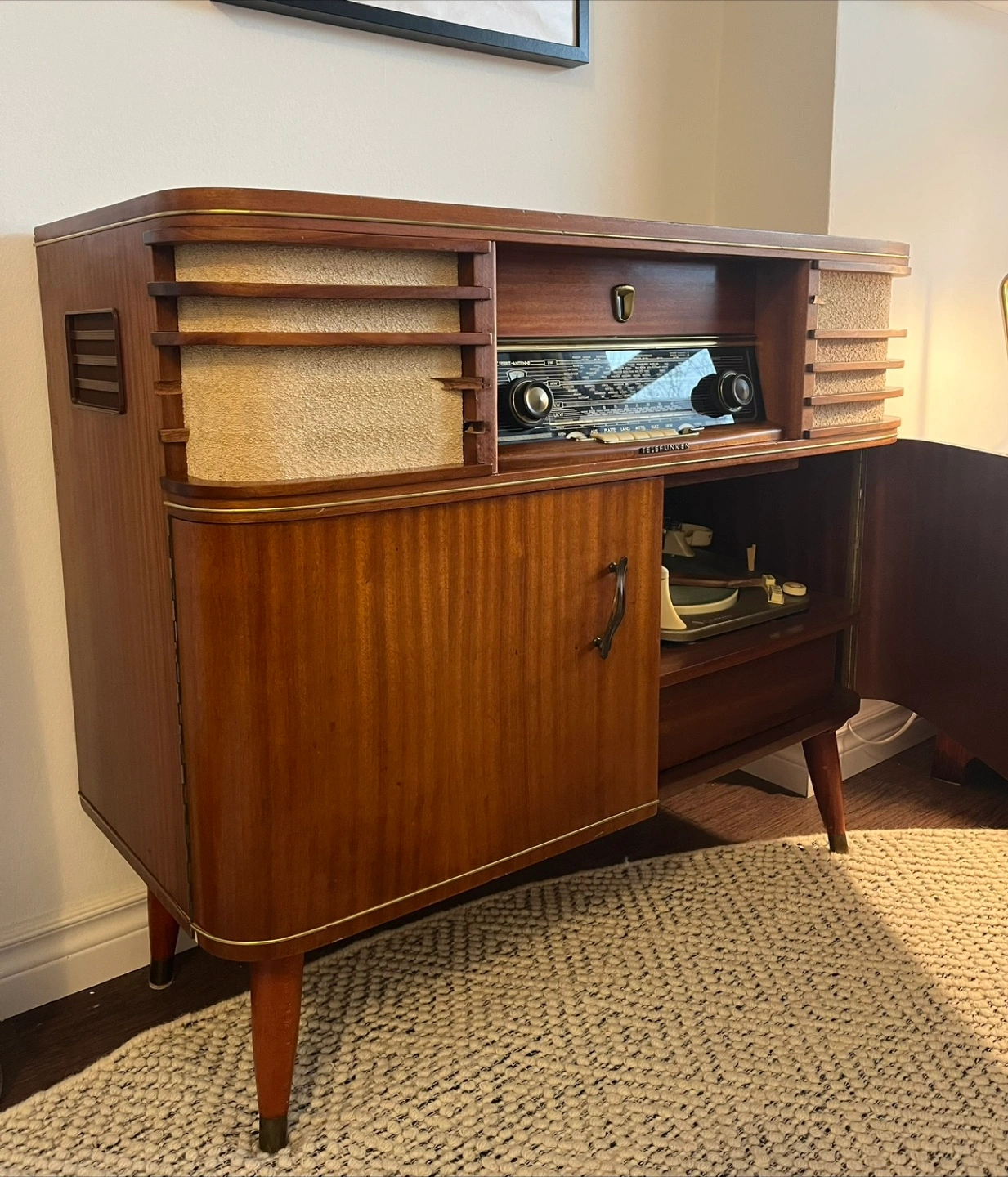 Vintage Telefunken console. Radio, speakers, turntable in one cabinet — unfortunately these parts don’t work, but it looks beautiful.