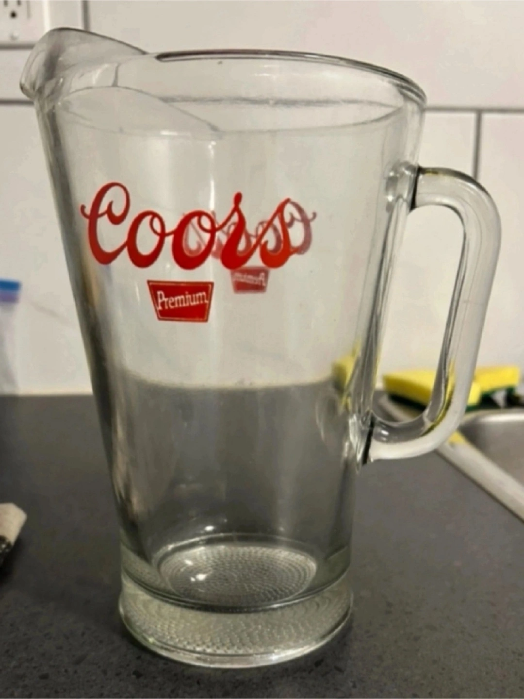 Also a Coors beer pitcher and a 1 gallon Mason Jar previously used for coffee beans.